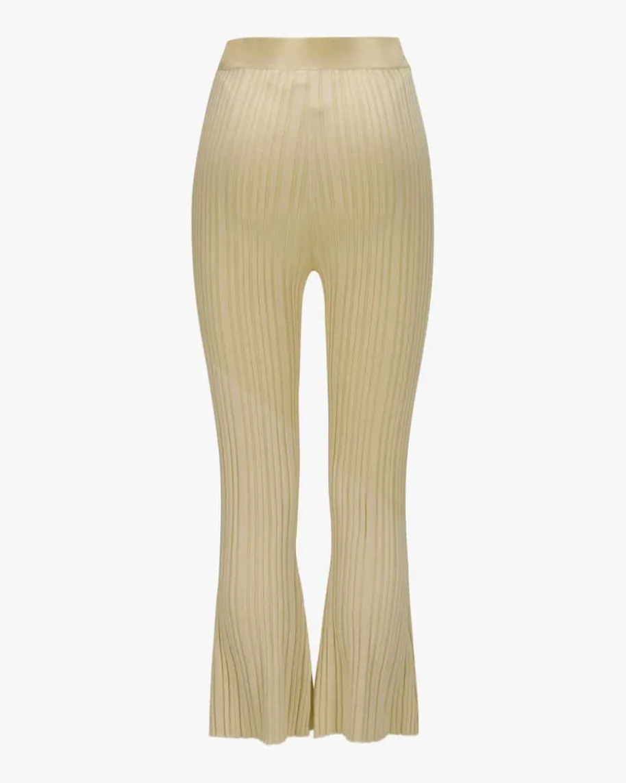 7/8-Hose für Damen von Nanushka in Hellgelb. Das Modell in gewolltunregelmäßigerRippstrick-Qualität besticht durch den weichen Merinowoll-Viskose-Mix sowie demelastischen Bund mit haptischen Wohlfühlmomenten, während der Bootcuteinen modischen Loungewear-Liebling zaubert.