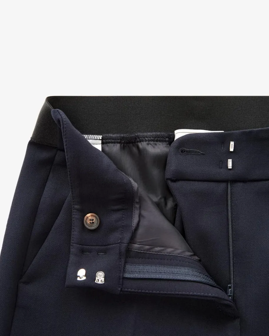 7/8-Hose für Damen von Peserico in Navy. Dank rückseitigem Gummibund sowiesofter, aber blickdichter Material-Qualität besticht das Modell mit hohemTragekomfort, während die verkürzte Silhouette mit ausgestelltem Bein inKombination mit klassischen Anzughosen-Details einen femininen Power-Look fürstilvolle Office-Looks kreiert.