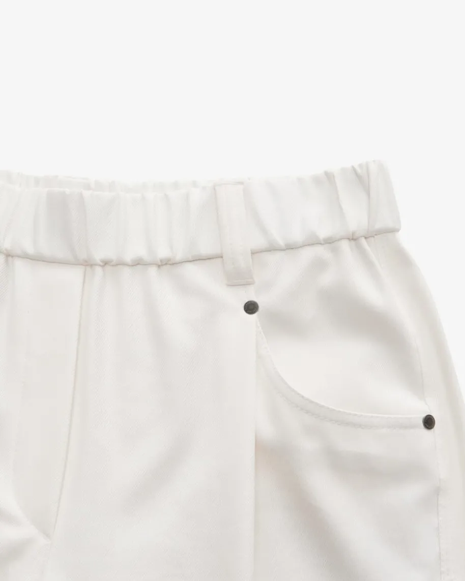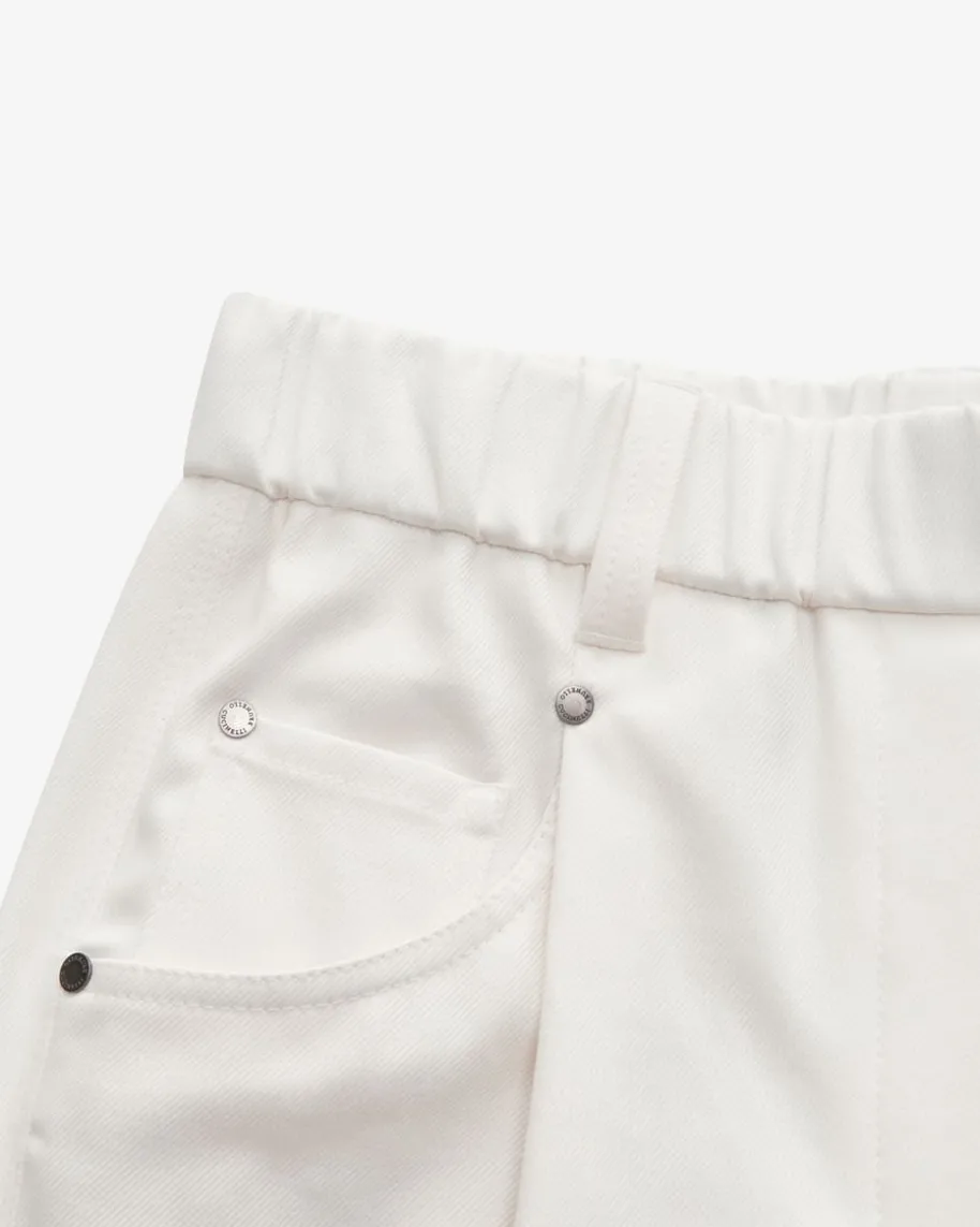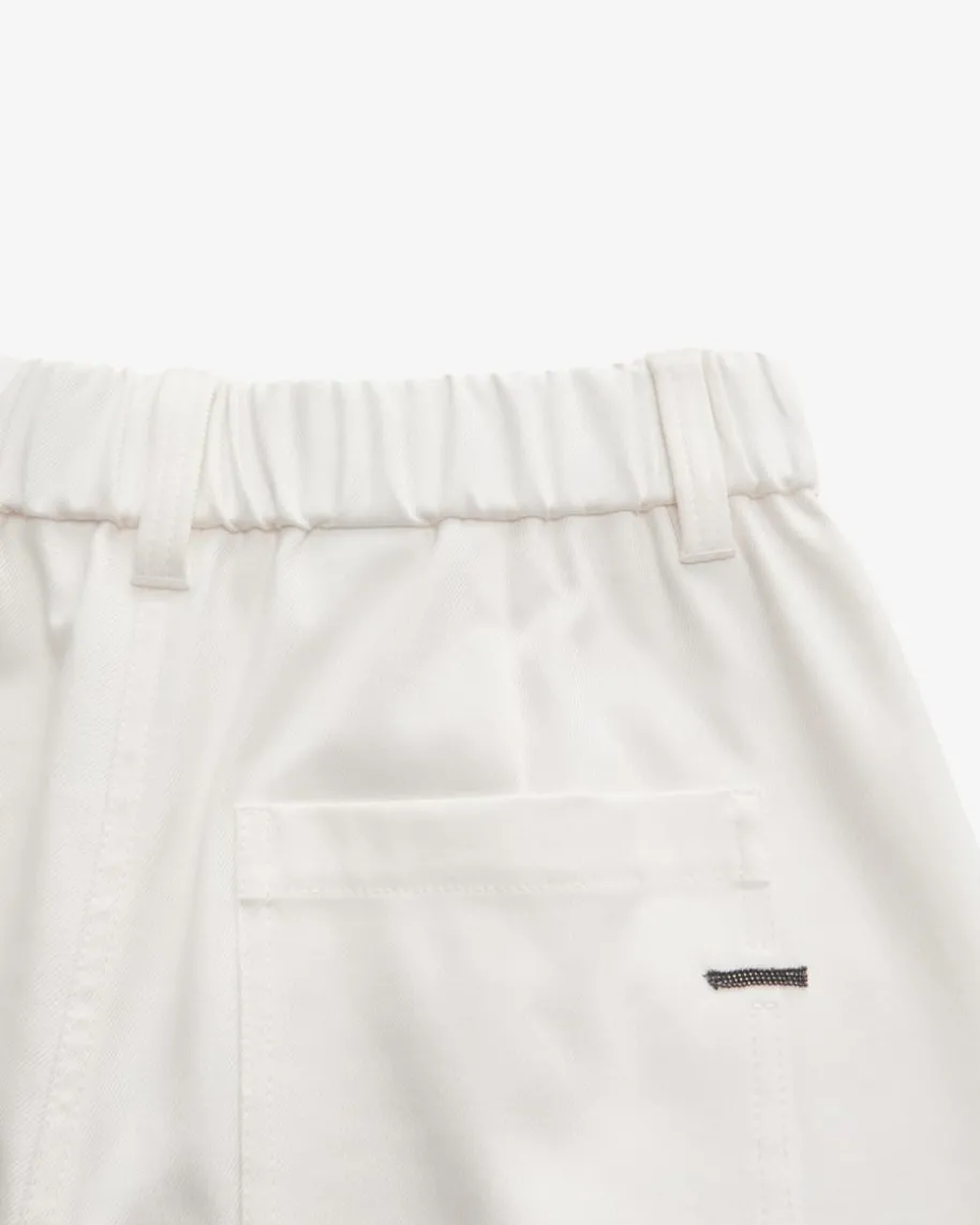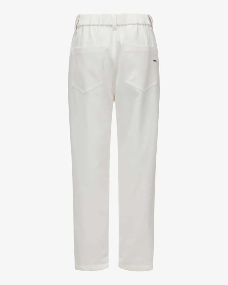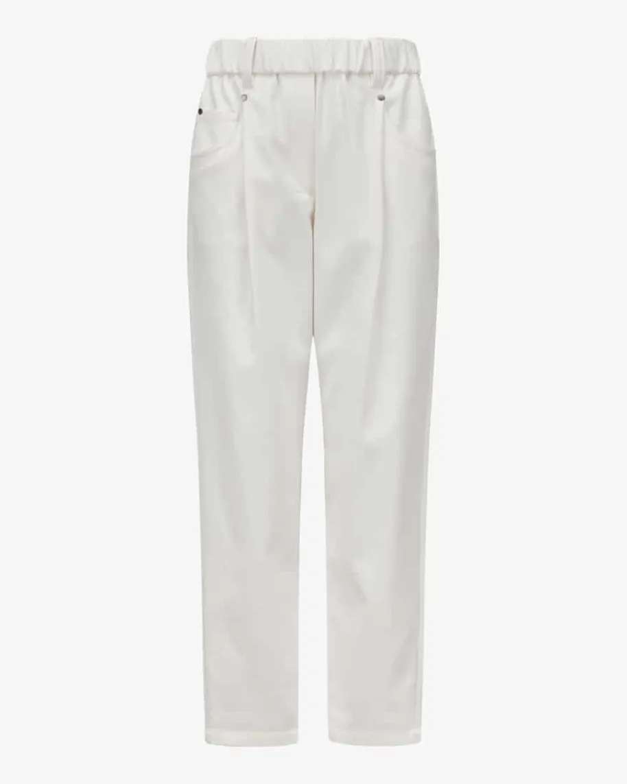 7/8-Hose für Damen von Brunello Cucinelli in Weiß. Dank der robusten, aberelastischen Baumwoll-Verarbeitung in Twill-Struktur sowie dem Gummibundpräsentiert sich das 5-Pocket-Modell in legerer Aufmachung, während die weitePassform mit zulaufendem Bein und Bundfalten einen modernen Casual-Begleiterkreiert.