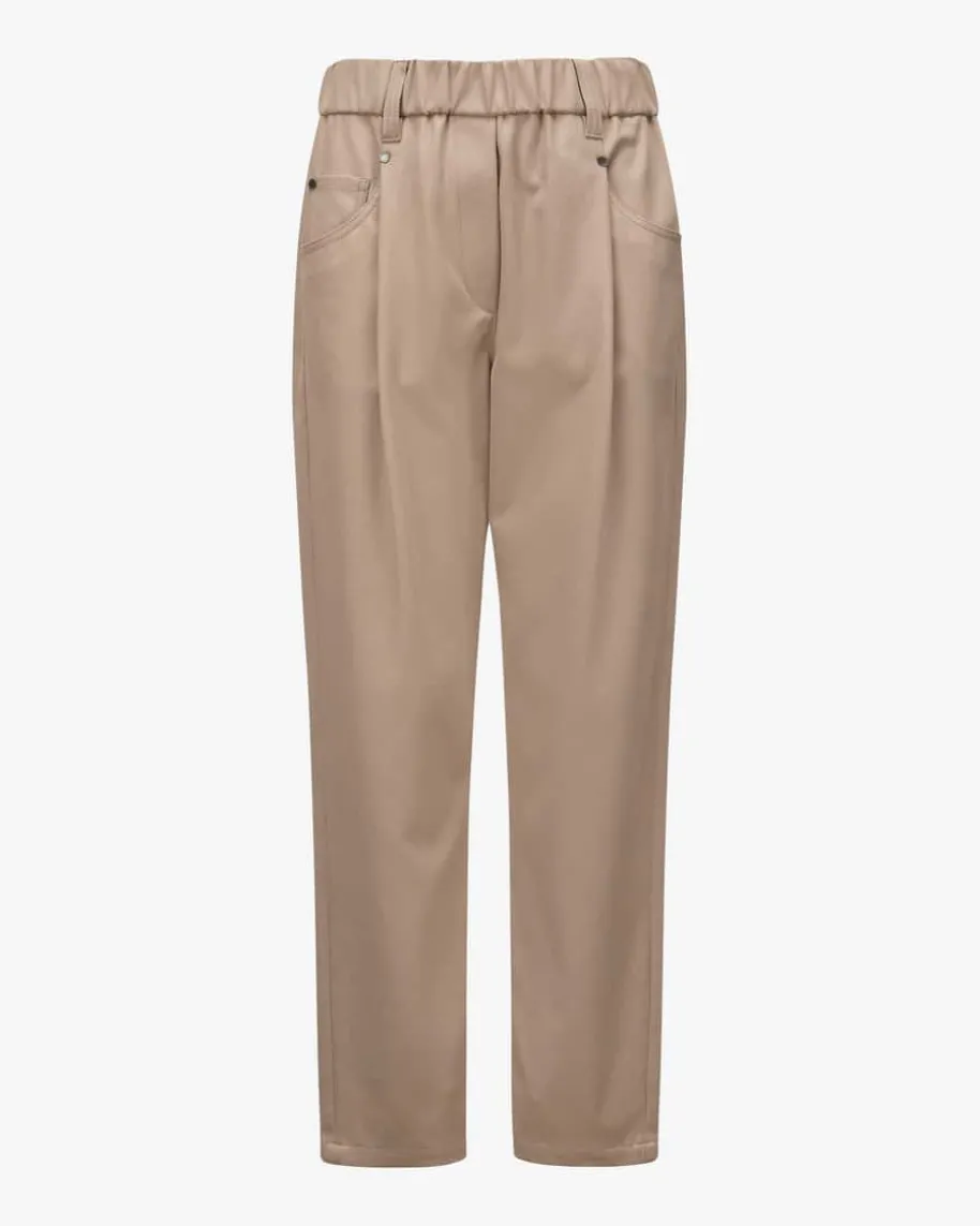 7/8-Hose für Damen von Brunello Cucinelli in Camel. Dank der robusten, aberelastischen Baumwoll-Verarbeitung in Twill-Struktur sowie dem Gummibundpräsentiert sich das 5-Pocket-Modell in legerer Aufmachung, während die weitePassform mit zulaufendem Bein und Bundfalten einen modernen Casual-Begleiterkreiert.