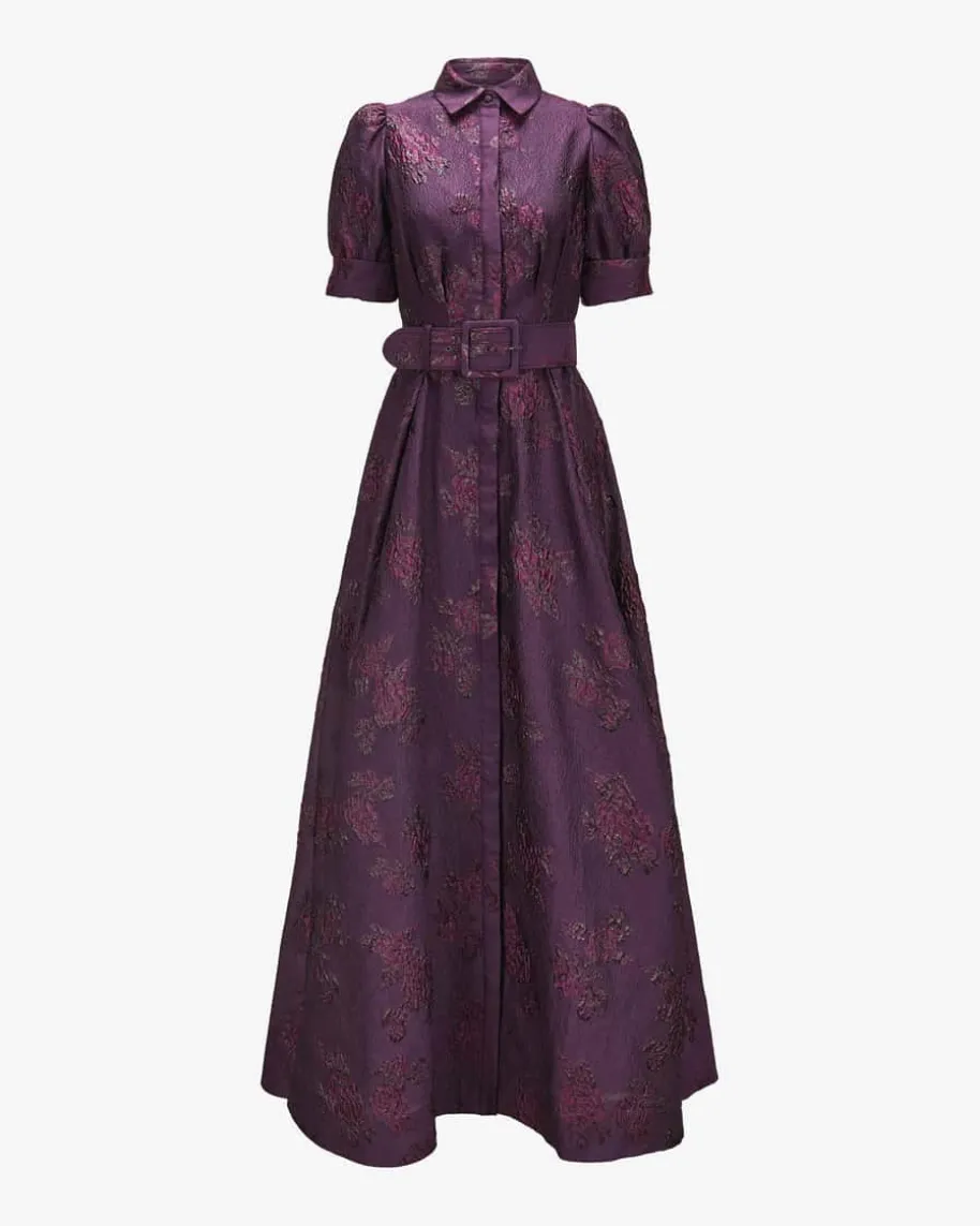 Afina Hemdblusenkleid für Damen von Rebecca Vallance in Bordeaux. Das Modellbegeistert mit changierender Crêpe-Qualität im romantischen Blumen-Dessin undraffinierten Falten-Details, während die taillierte Schnittführung mitausgestelltem Rock und Puff-Ärmeln eine besondere Blusenkleid-Silhouette mitRomance-Flair schafft.