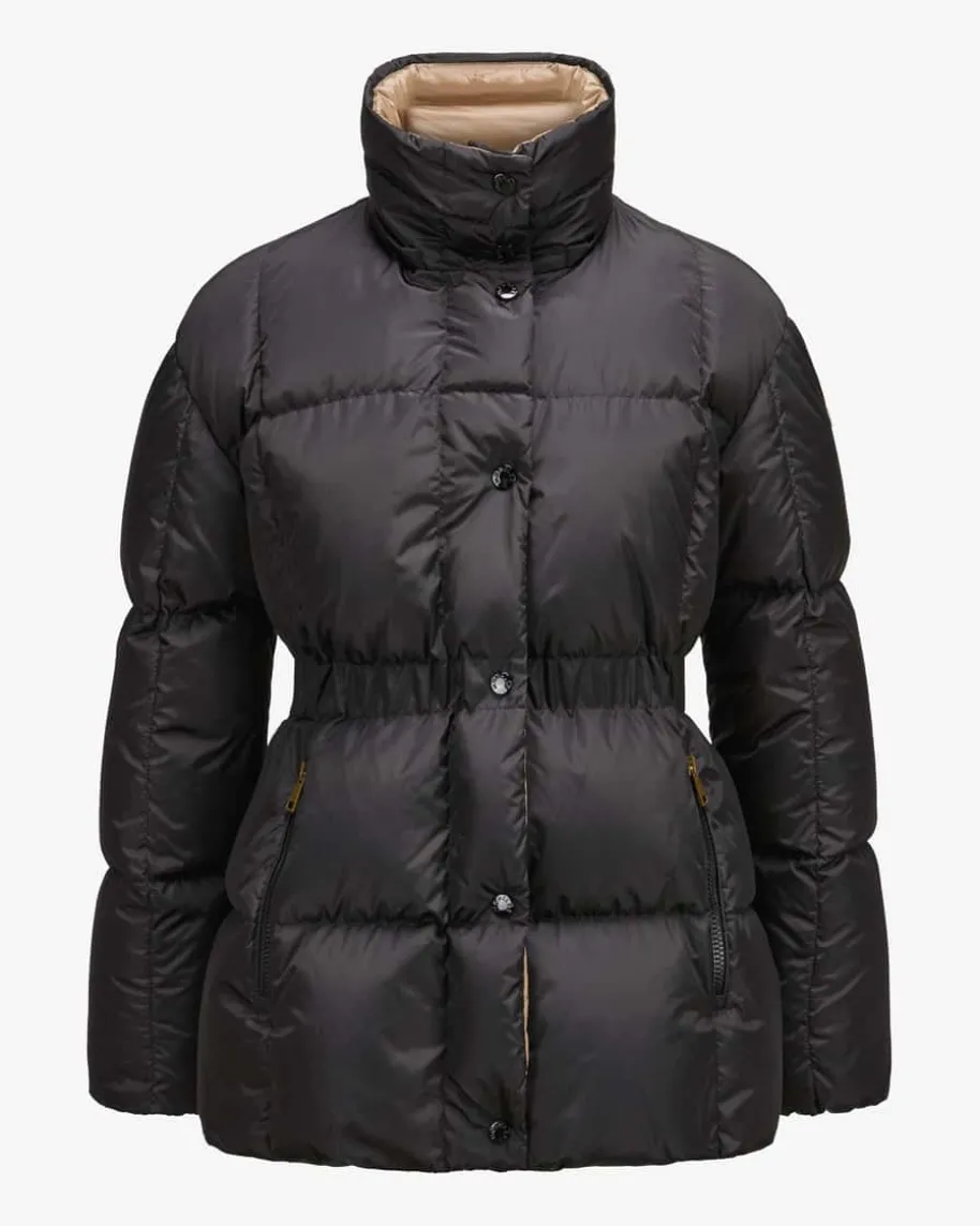 Agneux Daunenjacke für Damen von Moncler in Schwarz. Denkt man an hochwertige,warme Daunenjacken, kommt einem unweigerlich das italienische TraditionslabelMoncler in den Sinn. Auch mit diesem Modell präsentiert das Label dank derhochwertigen Daunen-Feder-Füllung einen optimalen Begleiter für die kühlereJahreszeit, während die taillierte Silhouette einen modischen und zugleichkomfortablen Favoriten kreiert.