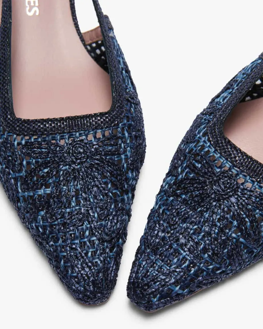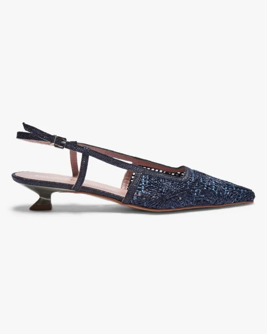 Airo Slingback-Pumps für Damen von Pedro Miralles in Marine. Das spitze Modellin floraler Bast-Optik punktet dank niedrigem Absatz sowie dem Slingback-Riemenals modisch-femininer Favorit.