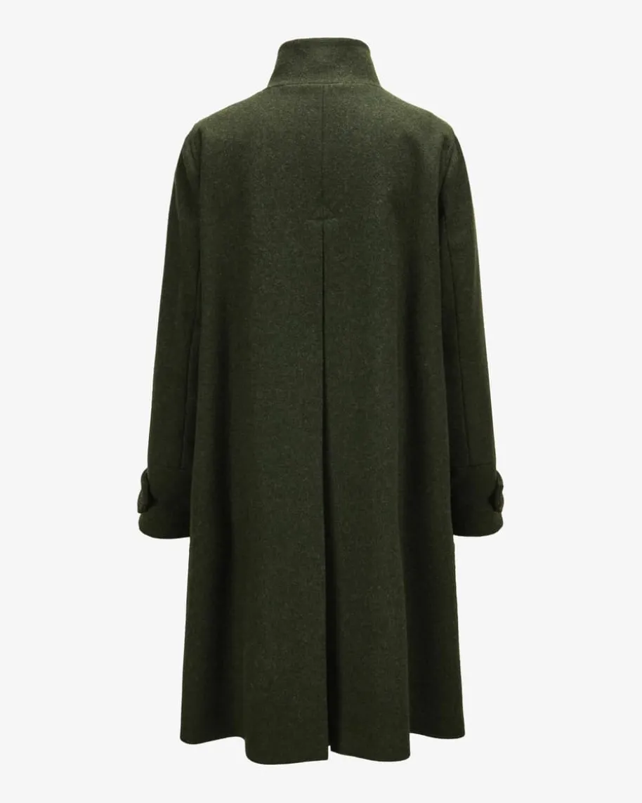 Alf Wollmantel für Damen von Cinzia Rocca in Moosgrün. Klassisch-elegantpräsentiert sich dieses Modell aus reiner Schurwolle und avanciert so zumzeitlosen Favoriten, der in keiner Übergangs-Garderobe fehlen darf.