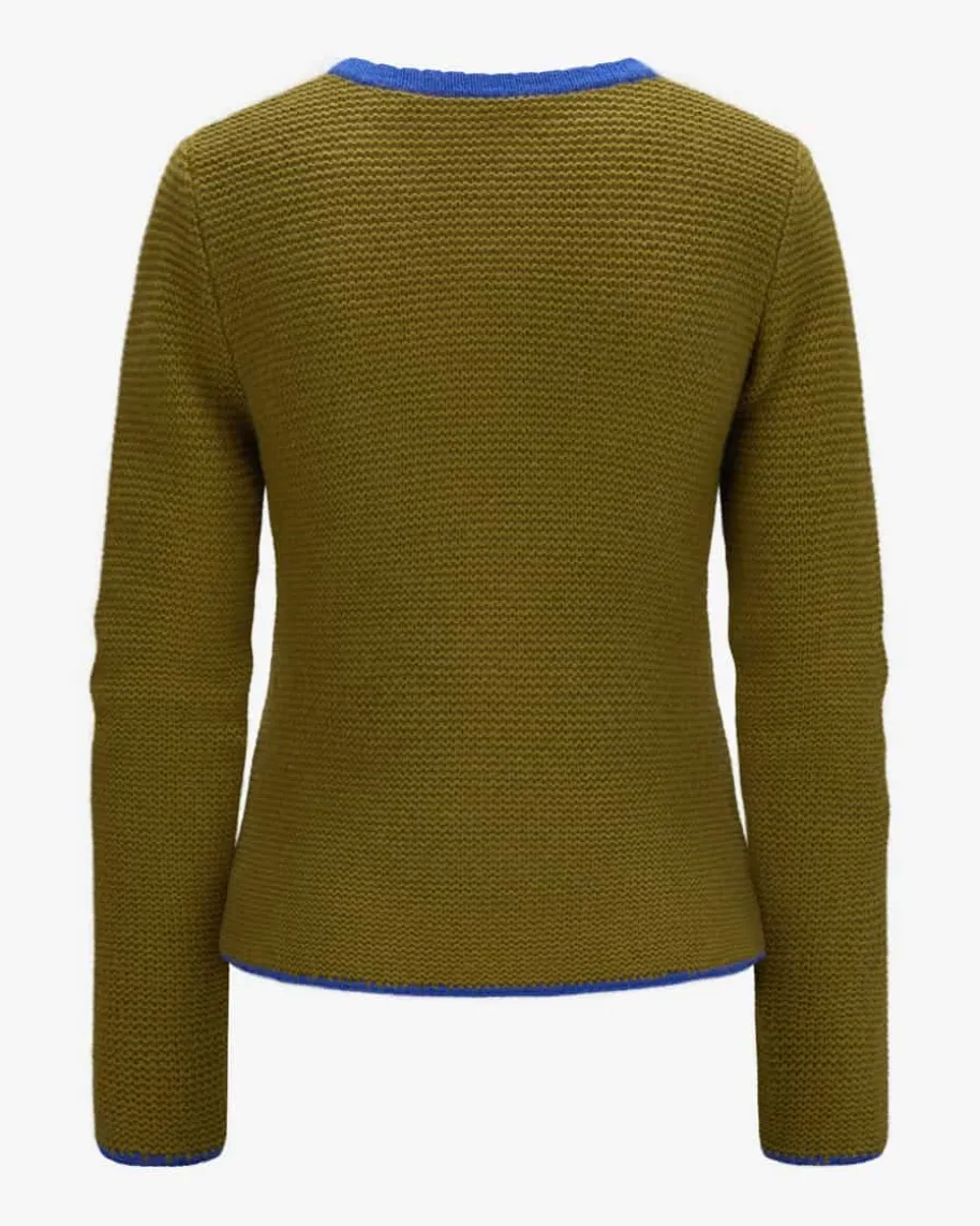 Alice Trachten-Cashmere-Strickjacke für Damen von My Herzallerliebst in Khakiund Blau. Das Modell präsentiert sich dank der Kontraststreifen in modischerAufmachung, während die hochwertige Cashmere-Qualität besonders angenehmeTragemomente verspricht.