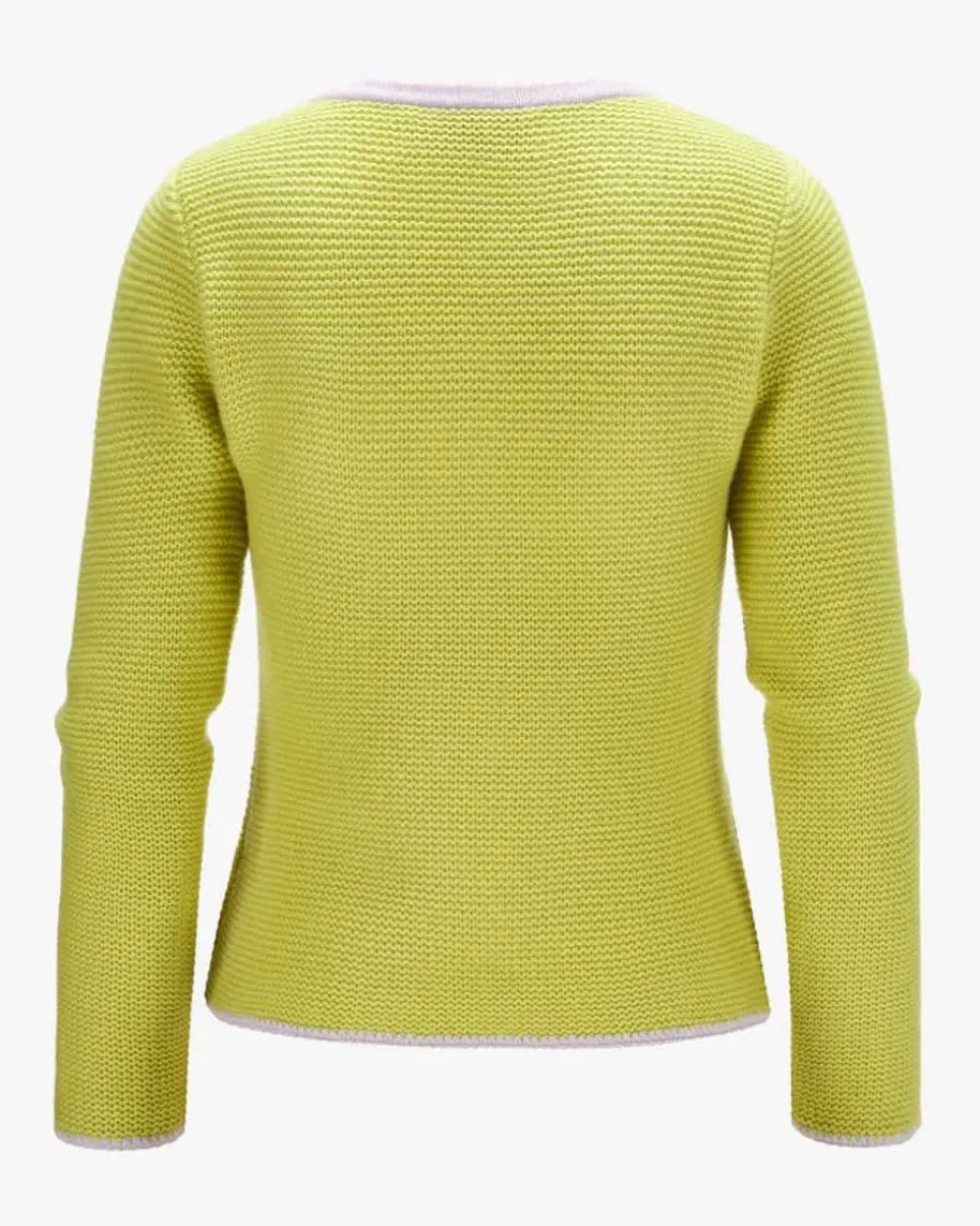 Alice Trachten-Cashmere-Strickjacke für Damen von My Herzallerliebst in Lemon,Flieder und Creme. My Herzallerliebst – das 2010 gegründete Label steht fürabsoluteHingabe und Leidenschaft. Zugleich interpretiert es dank verschiedenerFarbkombinationen Trachtenmode neu, anders, frischer und spezieller. Das legergeschnittene Modell aus hochwertiger Cashmere-Qualität punktet mit besondersweichem Griff, während das feine Strick-Muster, modische Kontrastpaspeln sowieKnöpfe in Perlmutt-Optik den traditionellen Trachten-Look harmonisch abrunden.