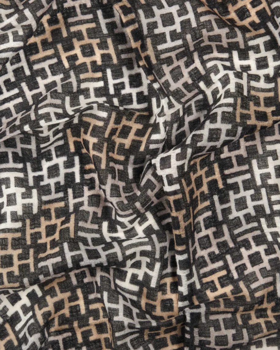 Alikinicki Cashmere-Tuch für Damen von Hemisphere in Schwarz, Weiß und Beige.Das Modell erhält dank der hochwertigen Cashmere-Qualität einen weichen Griffund besonders leichte Haptik, während das Monogramm-Muster ein stilvollesAccessoire mit labeltypischem Charme kreiert.