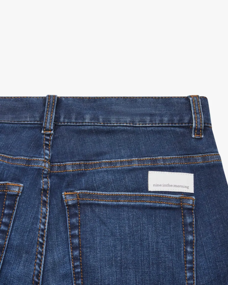 Ameli Jeans für Damen von nine:inthe:morning in Dunkelblau. Das Modell mitausgestelltem Bein präsentiert sich in legerer Aufmachung mit klassischen Denim-Details und dezentem Washed Look, während die elastische Baumwoll-Verarbeitungfür angenehmen Tragekomfort mit Push-Up Effekt sorgt.