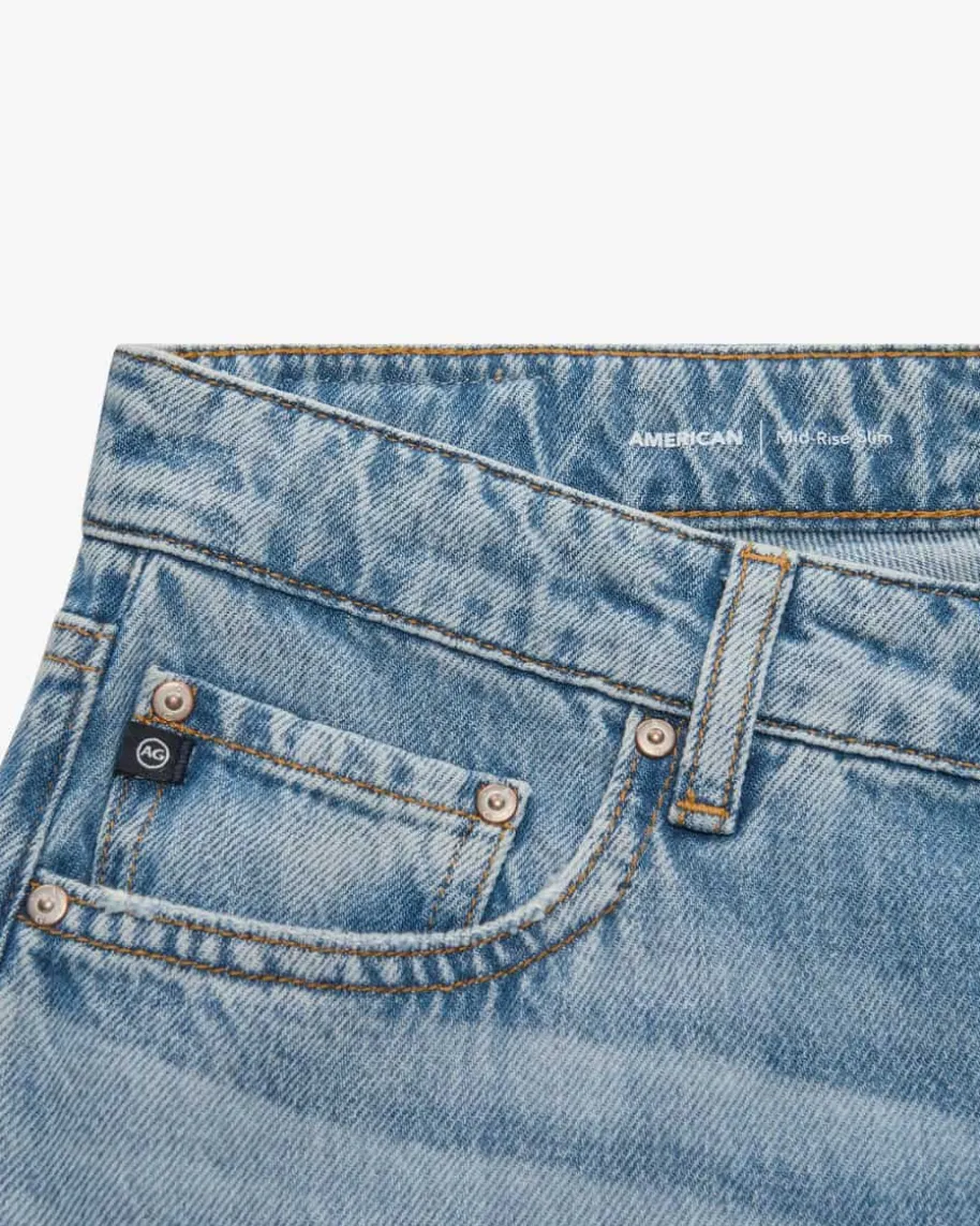 American Jeans Mid Rise Slim für Damen von AG Jeans in Hellblau. Das Modellbegeistert dank schmal zulaufender Passform sowie hochwertiger Baumwoll-Denim-Qualität, während die dezente Waschung einen modischen Vintage-Look kreiert.