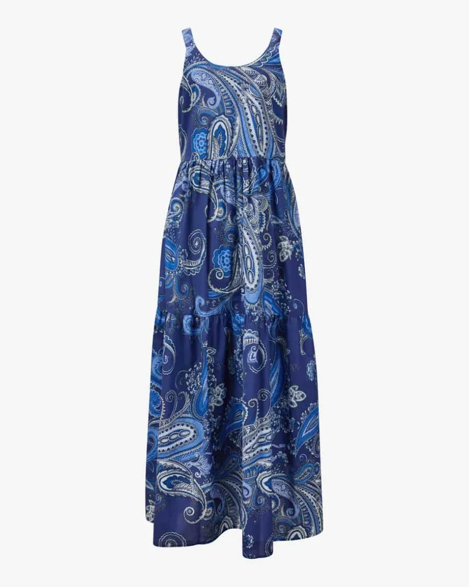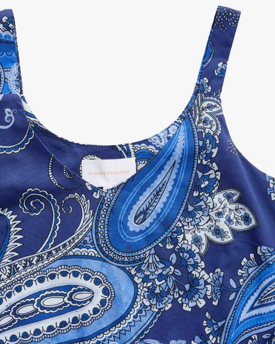 Amira Kleid für Damen von Robert Friedman in Dunkelblau, Blau und Weiß. Dank derhochwertigen Baumwolll-Qualität verspricht das Modell einen hohen Tragekomfort,während eingereihte Details einen femininen Style schaffen, rundet das Paisley-Allover-Dessin den Gesamtlook modern ab.
