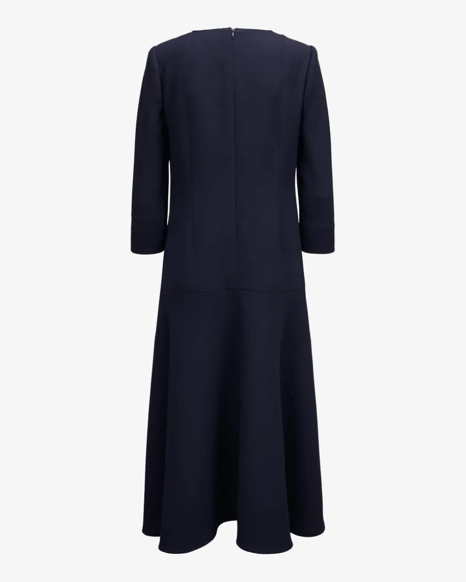 Angelina Kleid für Damen von Pio O’Kan in Marine. Zeitloser Luxus und moderneEleganz prägen den Stil dieses Modells – Die taillierte Silhouette und derausgestellte Rock garantieren femininen Schwung, während die feste Double-Crepe-Qualität einen stilvollen Begleiter kreiert.
