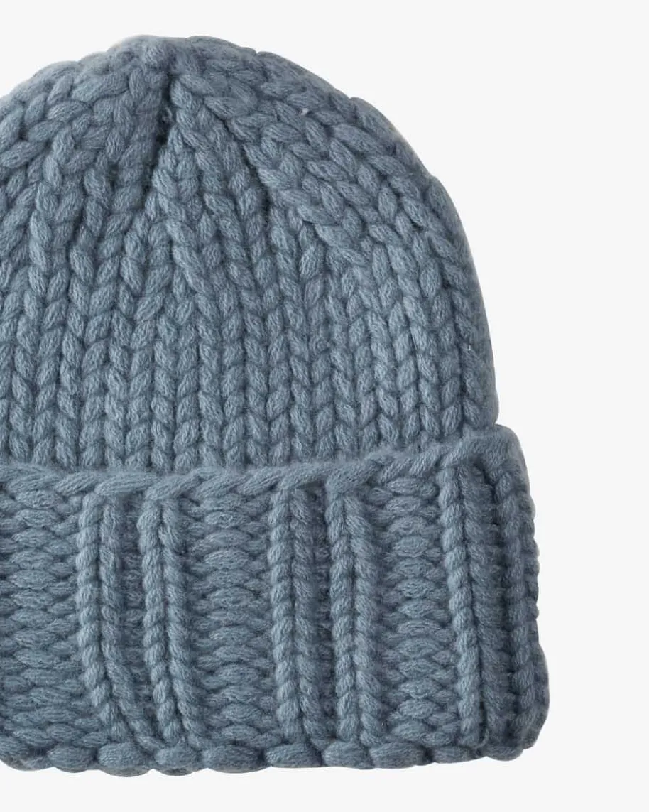 Ari Cashmere-Mütze für Damen von Warm-Me in Rauchblau. Das Modell begeistertdank der reinen Cashmere-Qualität mit angenehmen Tragemomenten, während dashandgefertigte Grobstrick-Design einen hochwertigen Begleiter für kalte Tageschafft.