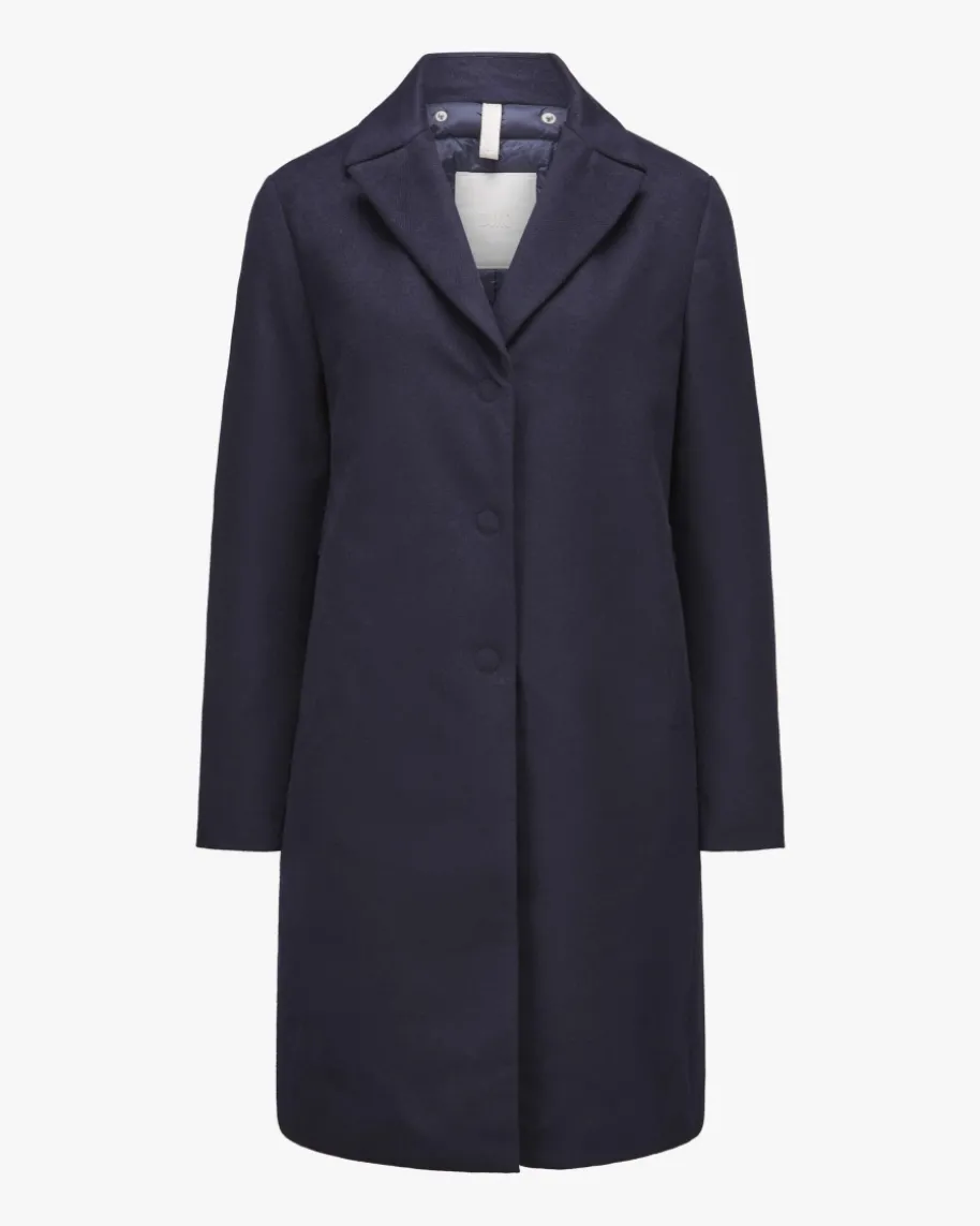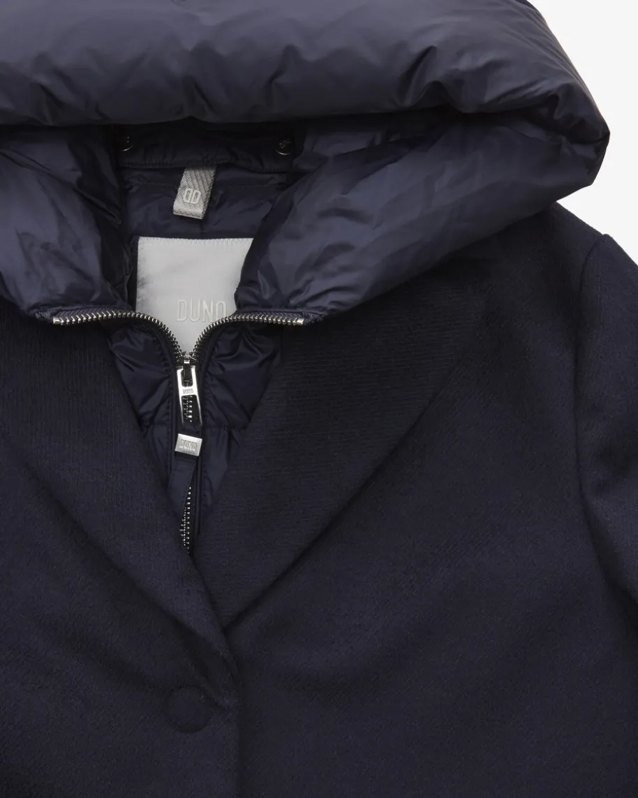 Artemide Daunen-Wollmantel für Damen von Duno in Navy. Made in Italy – Die Markekombiniert funktionale Outerwear mit italienischer Schneiderkunst und einemzeitgemäßen, urbanen Stil. Auch dieses Hybrid-Modell überzeugt dank der leichtenDaunen-Feder-Füllung sowie der heraustrennbaren Steppblende als wärmenderBegleiter mit stilvollem Touch, den Sie je nach Wetterbedingung und Anlass edeloder sportiv stylen können.