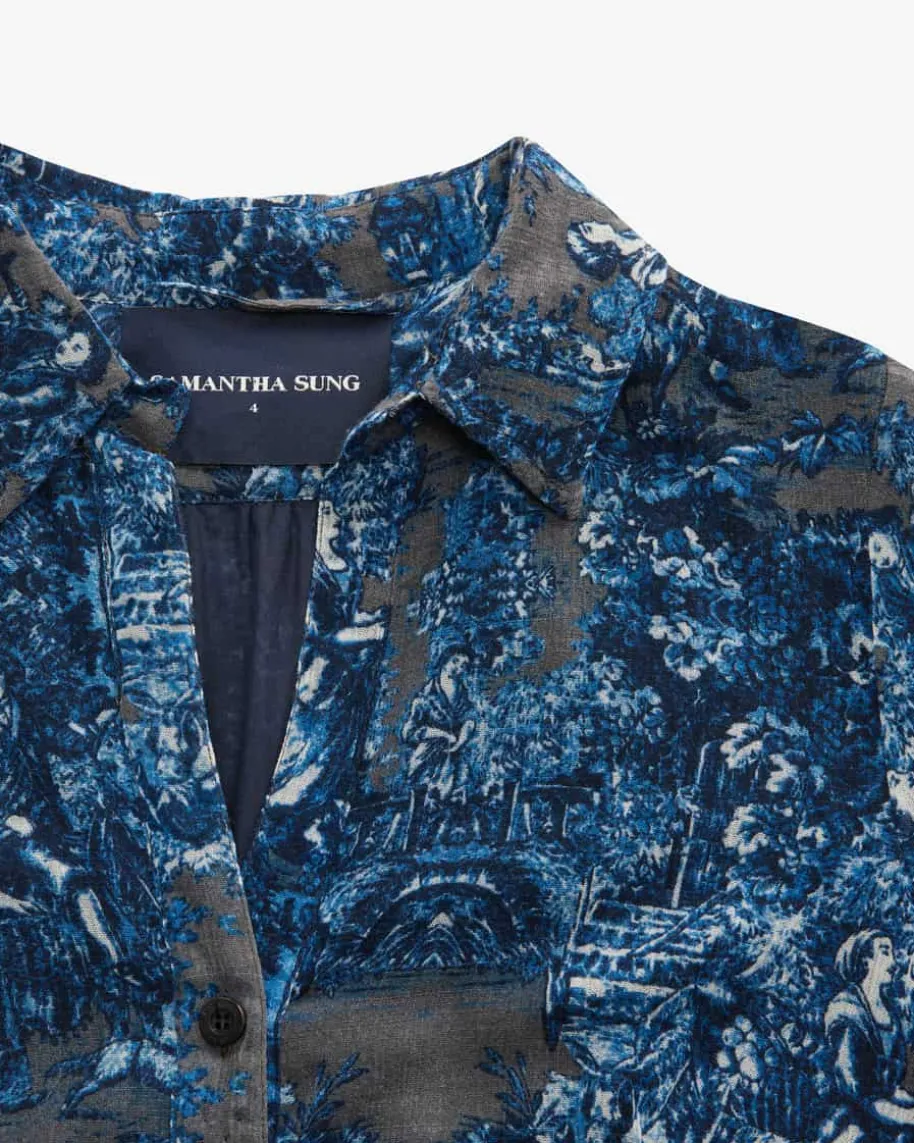 Aster Kleid für Damen von Samantha Sung in Beige und Azur. Das feminine Modellpräsentiert sich dank der Allover-Szenenabbildung im malerischen Stil alsmodischer Favorit, während die semi-transparente Aufmachung der hochwertigenWoll-Qualität zusammen mit den zwei Gürtel-Optionen vielseitige Looksgarantiert.