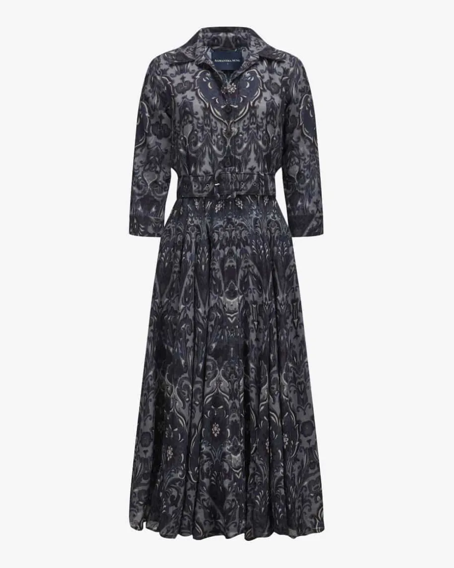 Aster Kleid für Damen von Samantha Sung in Dunkelgrau, Dunkelblau und Creme. Dasfeminine Modell präsentiert sich dank des Allover-Prints mit Paisley-Muster alsmodischer Favorit, während die doppellagige Aufmachung der hochwertigen Woll-Qualität zusammen mit den zwei Gürtel-Optionen vielseitige Looks garantiert.