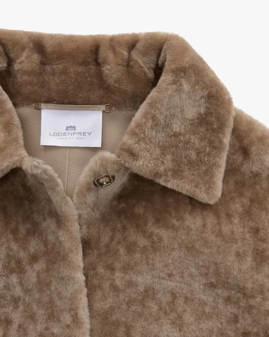 Astra Felljacke für Damen von LODENFREY in Beige. Das Modell präsentiert sichdank der modischen Fell-Aufmachung als stilvoller Favorit in femininem Charme,während die schlichte Schnittführung dem eleganten Gesamtbild Vielseitigkeitverleiht.