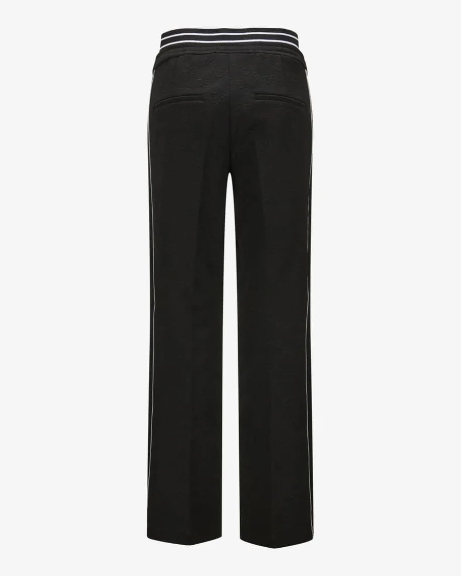 Ava Hose für Damen von Cambio in Schwarz und Weiß. Während dank elastischerMaterial-Qualität und Gummibund für angenehme Tragemomente gesorgt wird,avanciert dieses Modell dank strukturiertem Allover-Logo-Dessin zum modischenHighlight. Die seitlichen Galonstreifen sowie der doppelte Bund setzen zudemsportive Akzente.