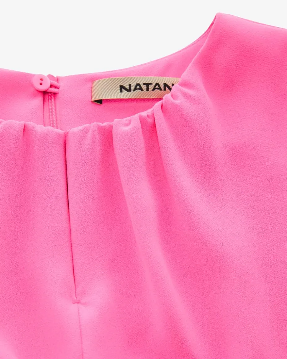 Ava Maxikleid für Damen von Natan in Rosa. Das Modell aus fließenderMaterial-Qualität präsentiert sich in feminin-eleganter Aufmachung, welche durchklassische Elemente sowie dem raffinierten Knoten-Detail mit besonderem Charmein Szene gesetzt wird.
