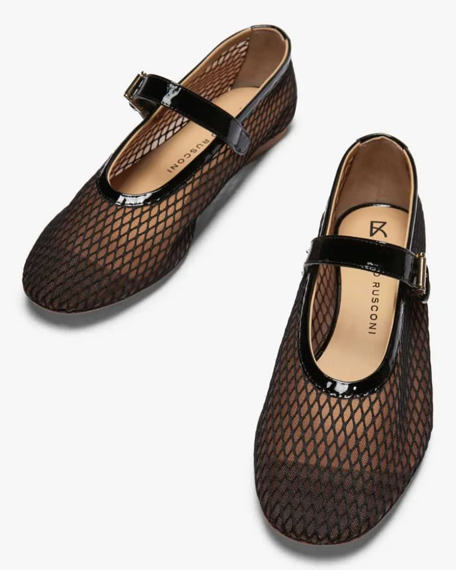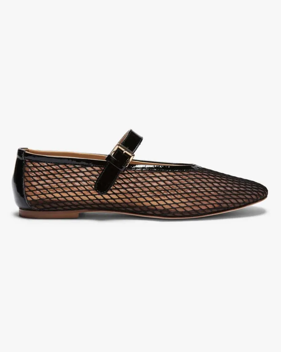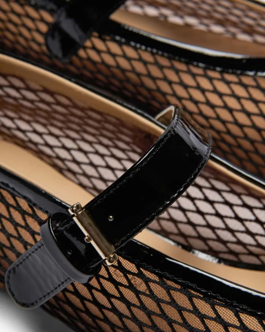 Ballerinas für Damen von LODENFREY in Schwarz. Ein eleganter Sommer-Eyecatcher -Das Modell präsentiert sich in semi-transparentem Design in doppellagiger Mesh-und Netz-Aufmachung, welche durch die changierenden Lackleder-Elemente stilvollergänzt wird. Der verstellbare Riemen sorgt zugleich für einen optimalen Halt.
