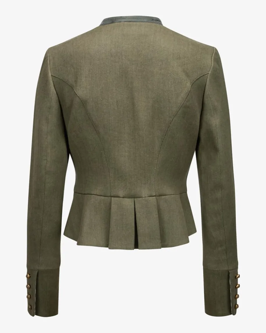 Barbara Trachtenblazer für Damen von Gottseidank in Graugrün. Der hochwertigeLeinen-Mix punktet mit besonders angenehmem Tragekomfort, während filigrane,goldfarbene Knöpfe sowie ein dezentes Schößchen das traditionelle Modell gekonntvollenden.