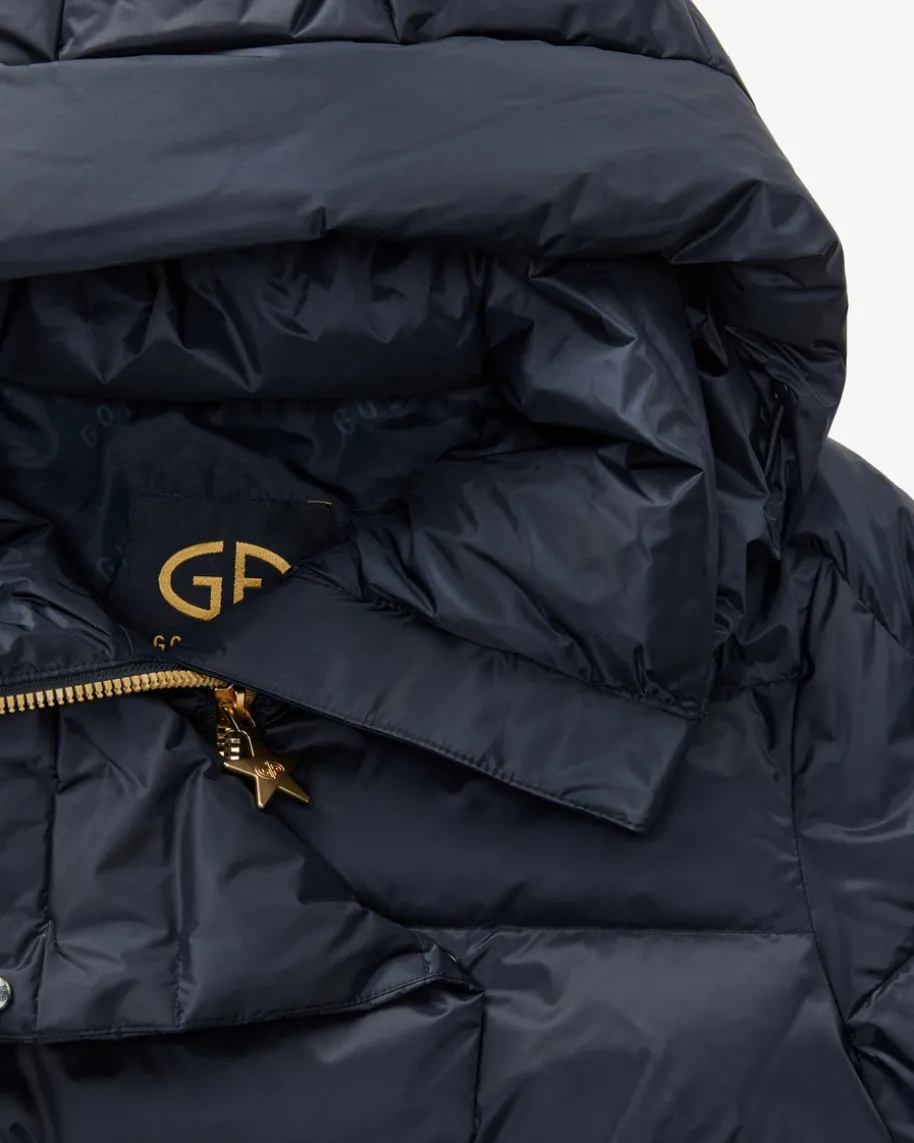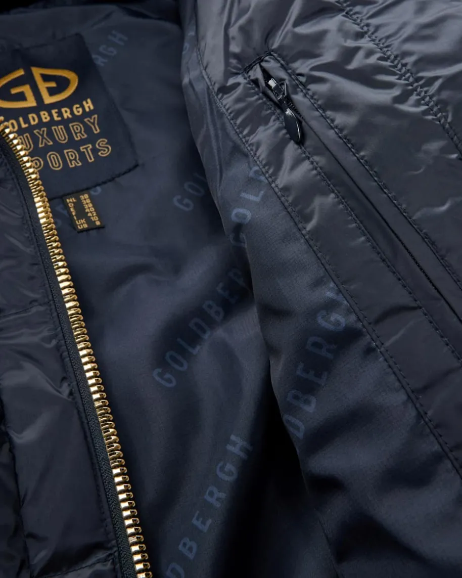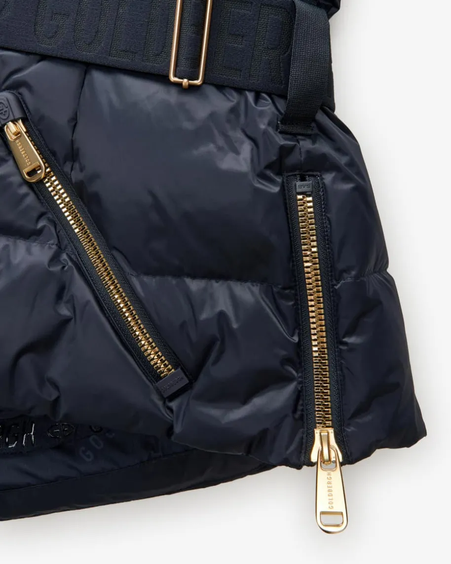 Bea Skijacke für Damen von Goldbergh in Navy. Dieses Modell mit hochwertigerDaunen-Füllung beschert warme Tragemomente, während unzähligeAusrüstungsmerkmale einen treuen Begleiter für jedes Ski-Wetter schaffen. Diegoldfarbenen Details sorgen für modische Akzente, welche die feminine Silhouettegekonnt unterstreichen.