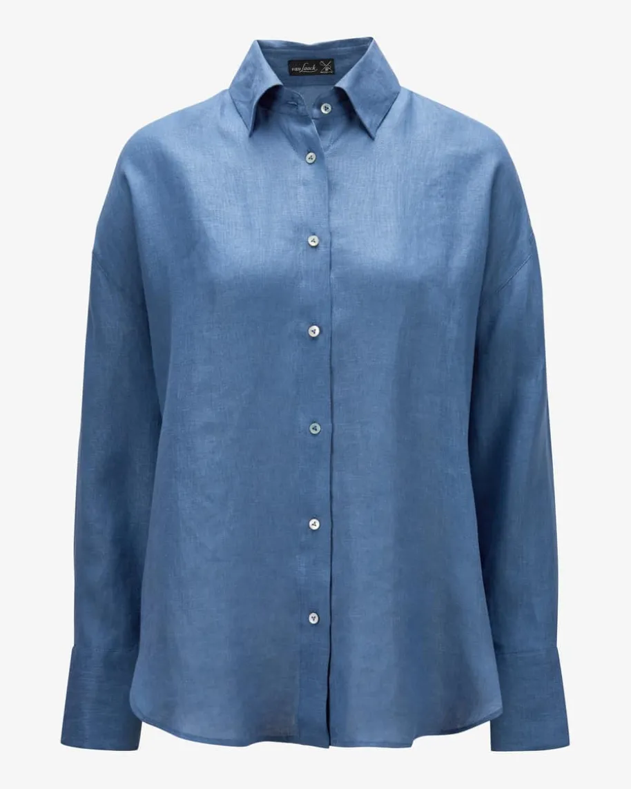 Besna Leinen-Hemdbluse für Damen von van Laack in Blau. Das Modell sticht alsexklusives Qualitätsprodukt heraus und garantiert dank der hochwertigen Leinen-Verarbeitung angenehmen Tragekomfort. Die Oversize-Passform in Kombination mitden klassischen Details schafft einen vielseitigen Style für modische Outfits.