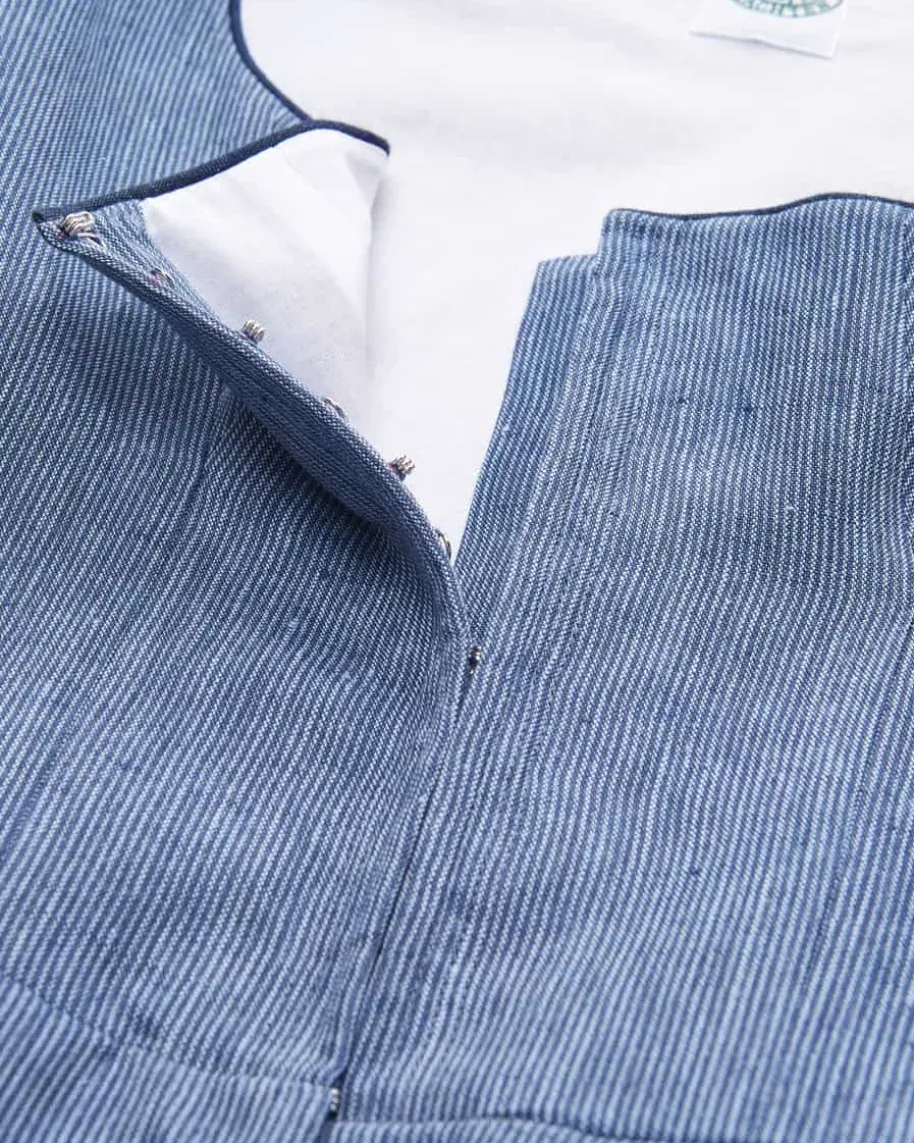 Bette Leinendirndl lang mit Sylvia Schürze für Damen von Tostmann in Blau undWeiß. Das Modell präsentiert sich dank strukturierter Leinen-Qualität mit feinemStreifen-Muster in femininer und zugleich traditioneller Aufmachung. Die tonaleSchürze komplettiert das minimalistische Trachten-Design gekonnt.