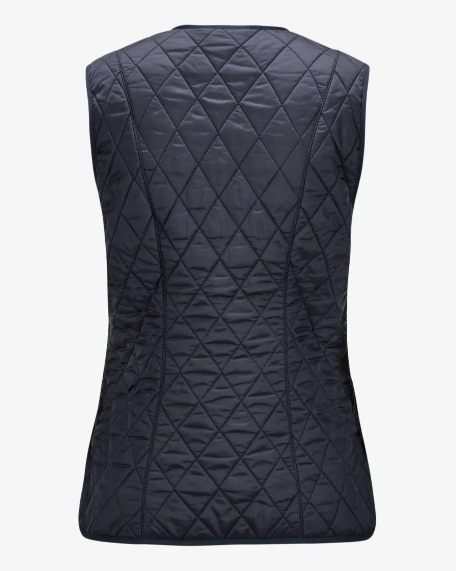 Betty Liner Steppweste für Damen von Barbour in Navy. Das 1894 gegründetebritische Traditionshaus ist weltberühmt für gewachste Outdoorjacken mitHeritage-Flair. Dieses Modell präsentiert sich dank der taillierten Passformsowie dem Rautenstepp-Design als vielseitiger Layering-Favorit, welcher durchdie sportive Paspelierung und das wärmende Fleece-Futter gekonnt abgerundetwird.