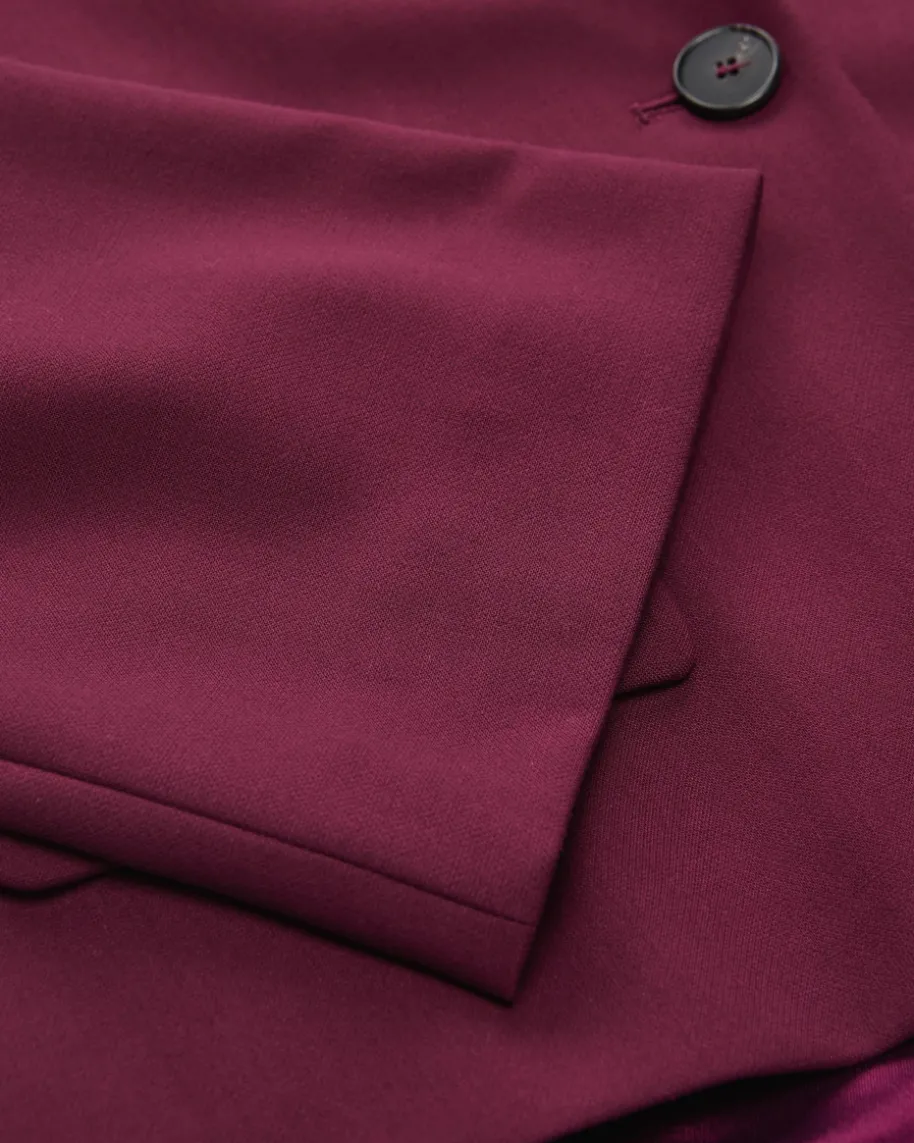 Blazer für Damen von Windsor in Bordeaux. Für elegante Power-Auftritte – DasModellpunktet mit verkürzter sowie ausgestellter Passform und kreiert so einenmodischen Look, während klassische Details das Gesamtbild stilvoll vollenden.