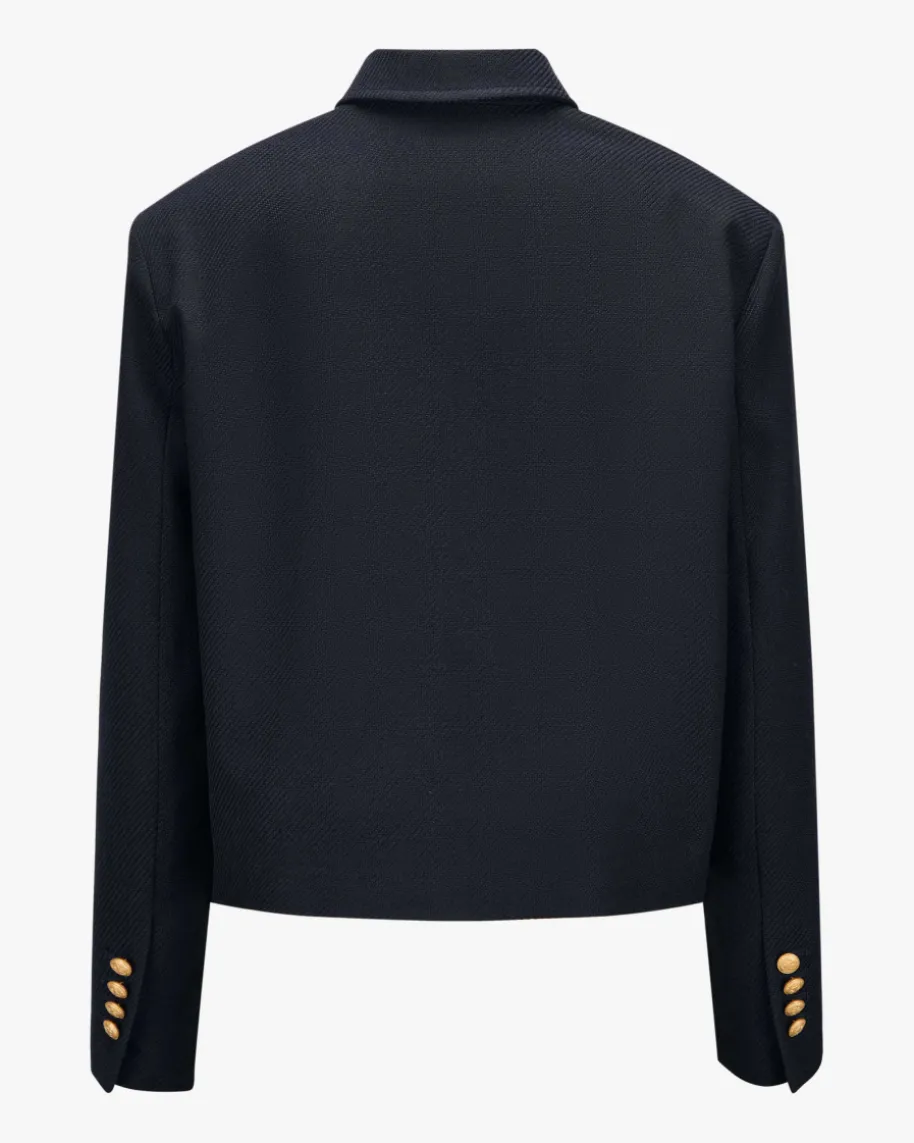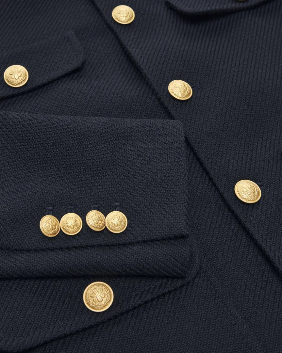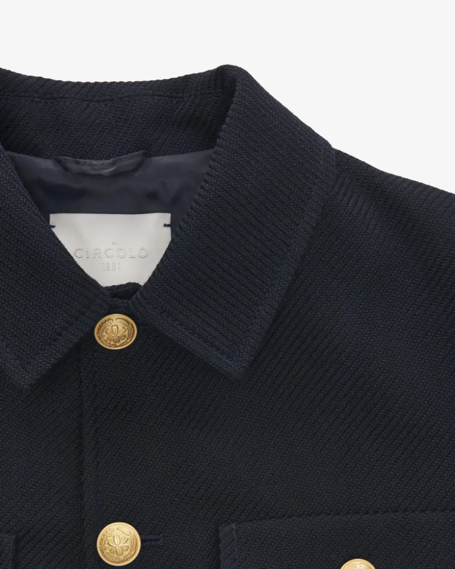 Blazer für Damen von Circolo 1901 in Navy. Das italienische Label steht fürsmarte Casualwear mit Tailoring-Anspruch. Auch dieses leicht verkürzte Modellpräsentiert sich mit strukturiertem Schurwoll-Baumwoll-Mix, welcher sowohl mitangenehmem Tragegefühl als auch als modernes Highlight überzeugt. KlassischeDetails und die goldfarbenen Knöpfe runden den modisch-femininen Look harmonischab.
