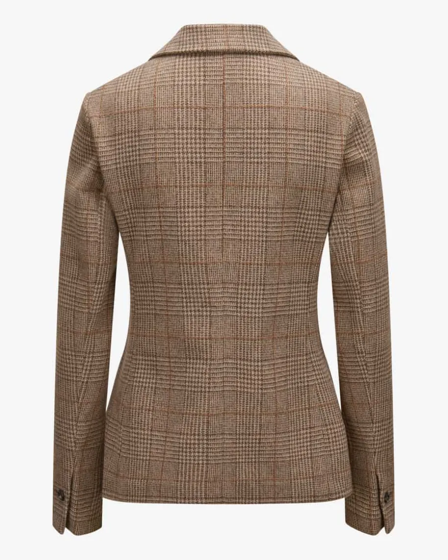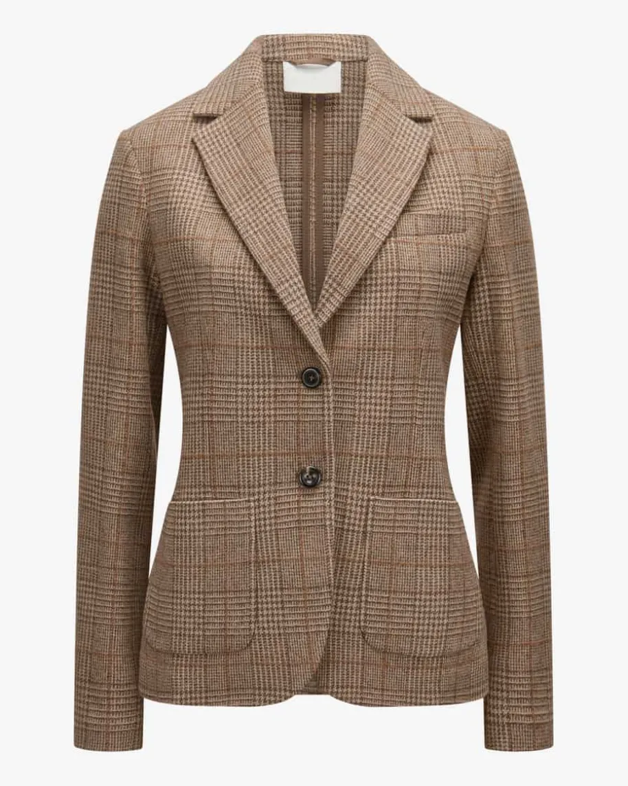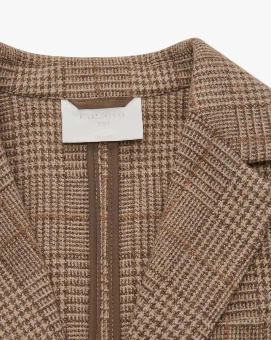 Blazer Slim Fit für Damen von Circolo 1901 in Dunkelbraun, Cognac und Beige. Dasungefütterte Modell aus hochwertiger Schurwoll-Cashmere-Qualität sorgt fürangenehme Tragemomente, während das Karo-Dessin und die schlichten Knöpfe denGesamtlook harmonisch abrunden.
