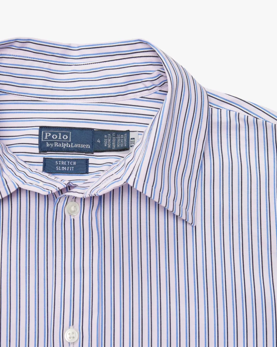 Bluse Stretch Slim Fit für Damen von Polo Ralph Lauren in Rosa, Blau undSchwarz. Das Modell in schlichtem Schnitt überzeugt dank des feinen Baumwoll-Mixes mit angenehmen Tragemomenten, während das Streifen-Dessin einenklassischen Begleiter für vielseitige Styles schafft.
