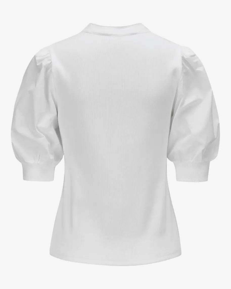 Coralee T-Shirt für Damen von Veronica Beard in Weiß. Während der Material-Mixan den angesetzten Puffärmeln das gewisse Etwas verleiht, sorgt die Feinripp-Qualität für einen hohen Tragekomfort. Zudem runden die changierenden Knöpfe denGesamt-Look modisch ab.