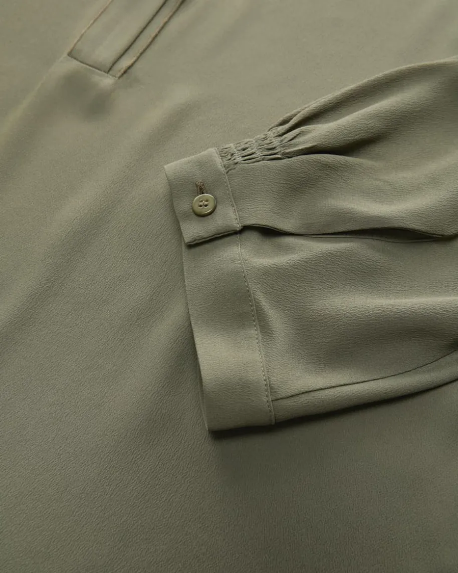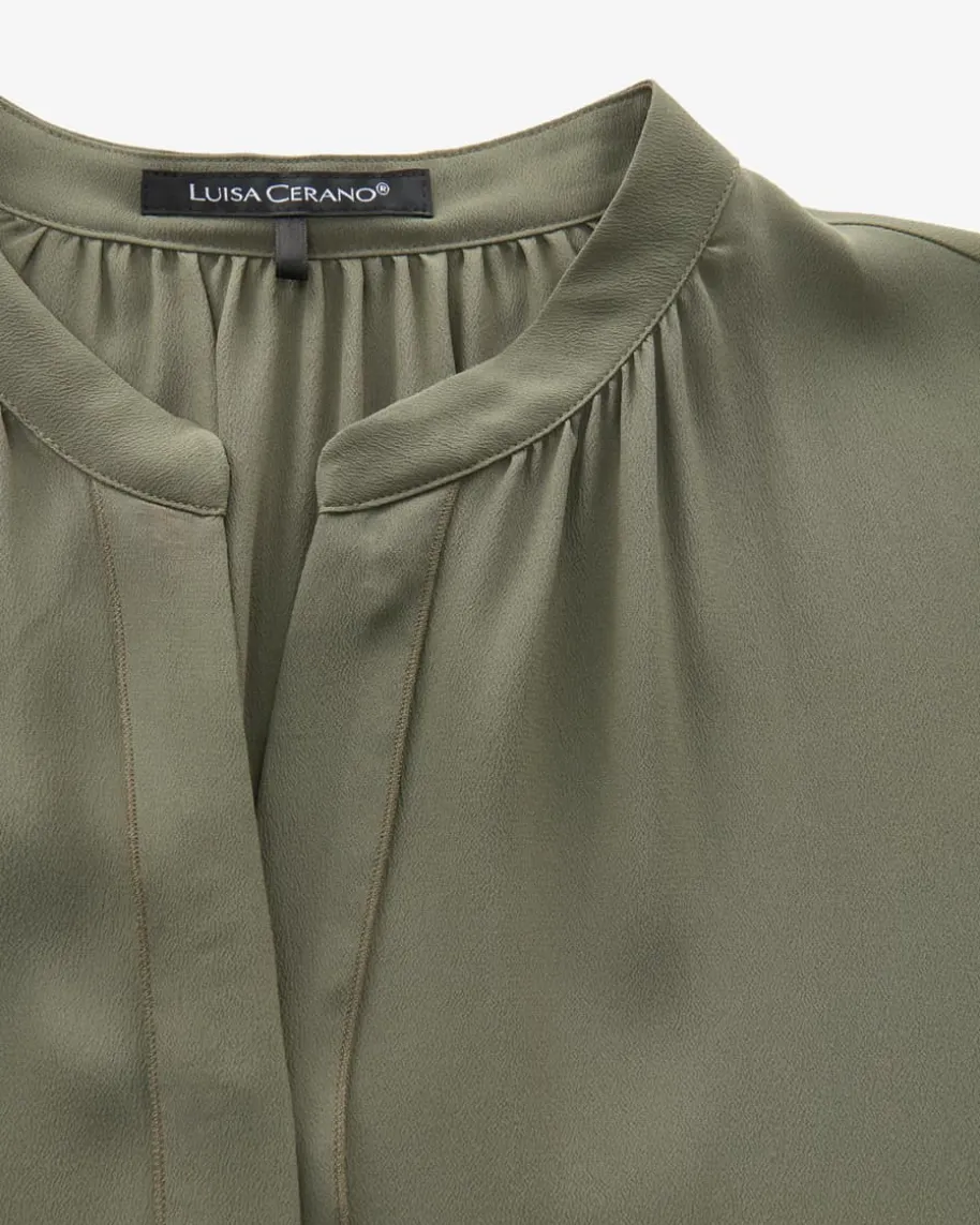 Bluse für Damen von Luisa Cerano in Khaki. Das Modell begeistert mit leichtemSeiden-Mix in feiner Struktur, welche ein angenehmes Tragegefühl beschert. DerTunika-Ausschnitt sowie gesmokte Einsätze am Ärmel kreieren einen femininenGesamt-Look mit besonderem Touch.