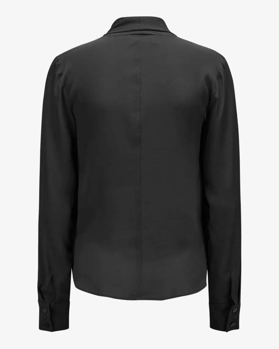 Bluse für Damen von Maison Common in Schwarz. Das Label verkörpert Lebensfreudeund Esprit, die sich neben femininem Charme mit farbenfrohen Designs sowieMustern in den Kollektionen wiederfinden. Auch dieses Modell begeistert dank desfließenden Material-Mix mit Seide, während die raffinierte Wickel-Optik einenbesonderen Begleiter für elegante Styles schafft.