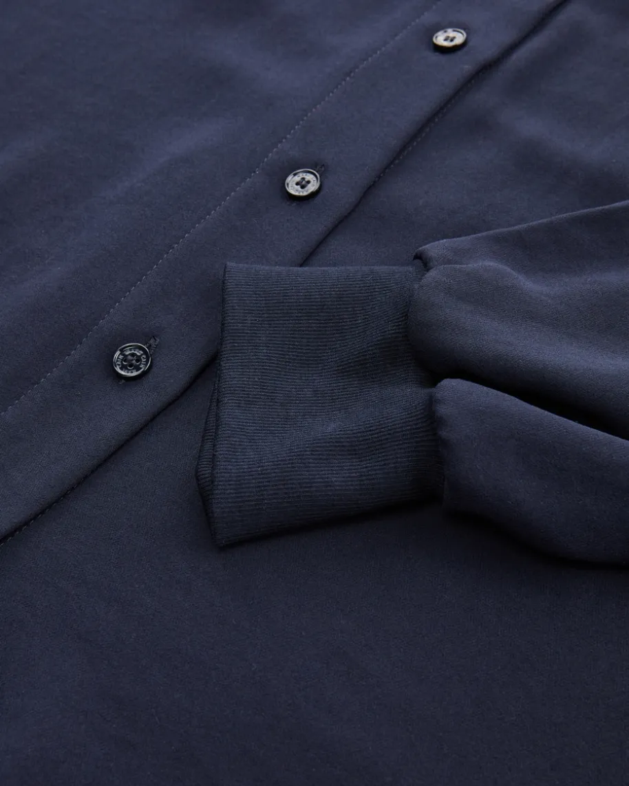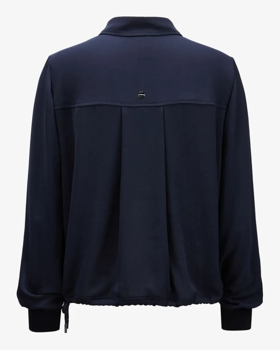 Bluse für Damen von Marc Cain in Navy. Das Modell begeistert mit zarterMaterial-Qualität, die durch ihre fließende Optik eine feminine Note schafft.Der Tunnelzug am Saum verleiht zusammen mit den sportiven Rippstrick-Bündchen anden Ärmelenden einen legeren Touch, während klassische Details das Gesamtbildstilvoll abrunden.