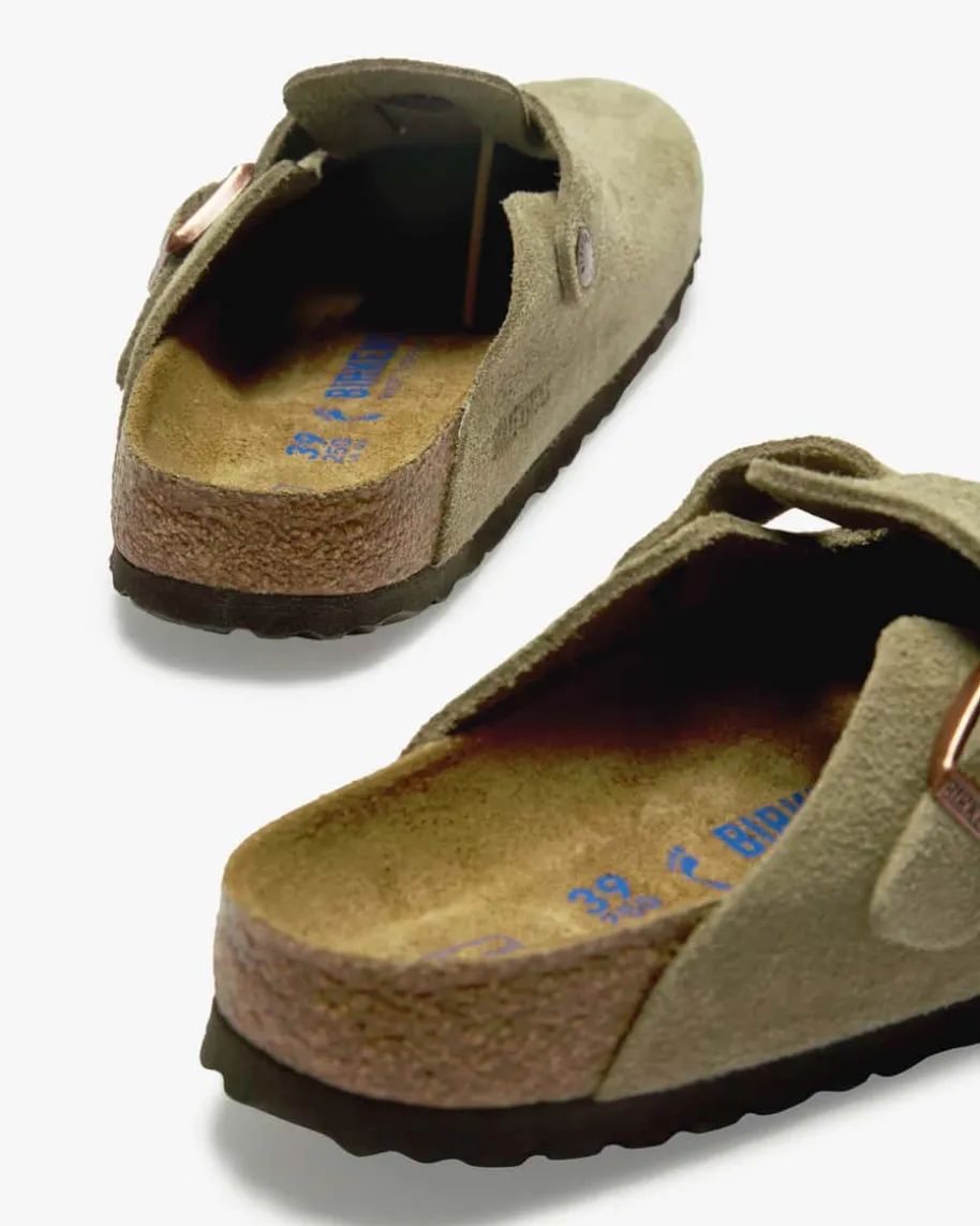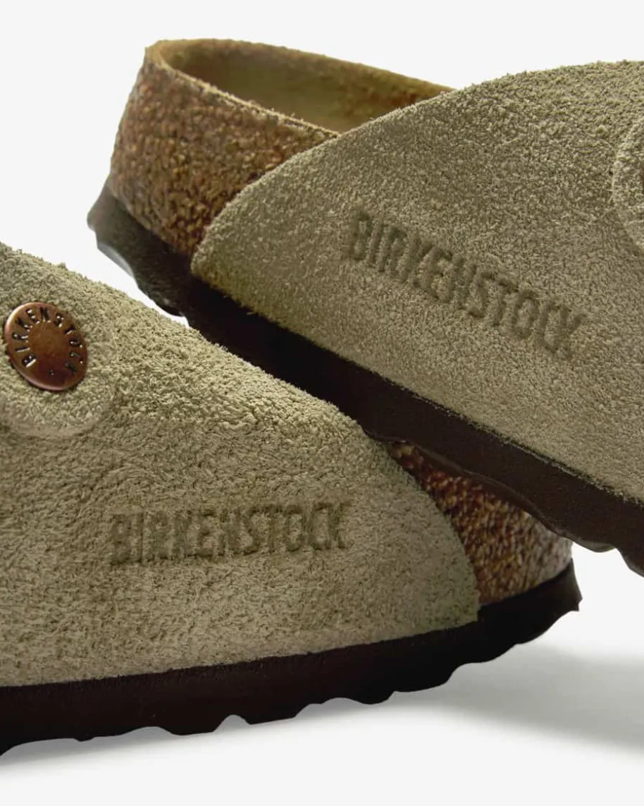 Boston Pantoletten für Damen von Birkenstock in Taupe. Seit über 200 Jahrenrevolutioniert Birkenstock die Schuhindustrie immer neu. Mit seinemeinzigartigen, anatomischen Fußbett hat Birkenstock ein innovativesProduktkonzept auf den Markt gebracht, das bis heute Bestand hat. Diehochwertige Veloursleder-Qualität sorgt zugleich für ein edles Finish.