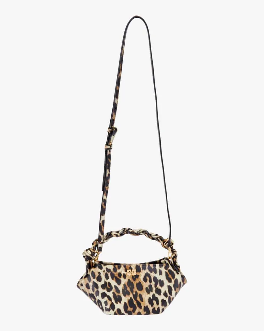Bou Bag Mini Henkeltasche für Damen von Ganni in Braun, Dunkelbraun und Beige.Während das markante Leo-Design für einen stilvollen Look sorgt, setzen diegoldfarbenen Hardware-Elemente modische Akzente. Logo-Details und derraffinierte geflochtene Henkel runden das Gesamtbild harmonisch ab.