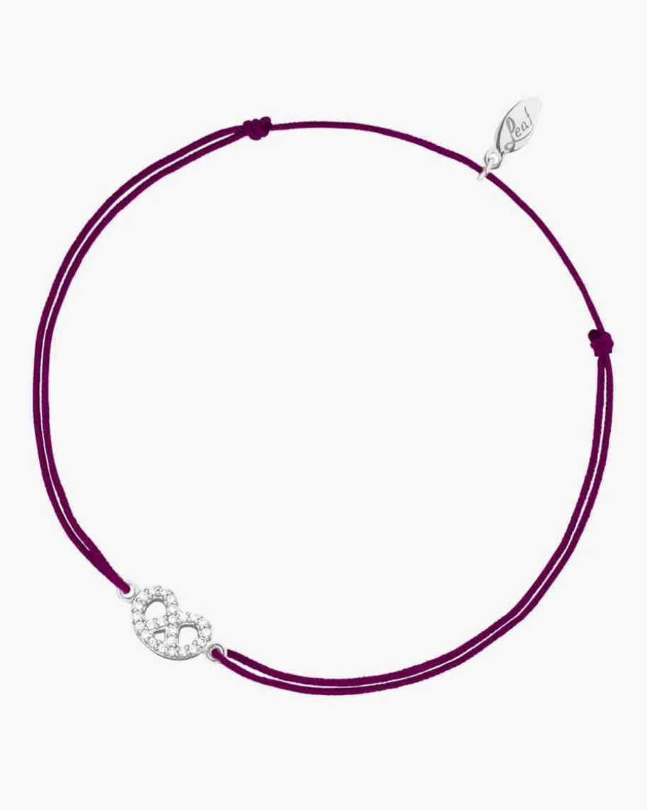 Brezn Zirkoni Glücksbändchen für Damen von Leaf in Silber und Bordeaux. Dank dersilbernen Brezel mit Zirkonia-Besatz präsentiert sich das Modell als modischesAccessoire für stilbewusste Damen, während das verstellbare Bändchen denperfekten Sitz verspricht.