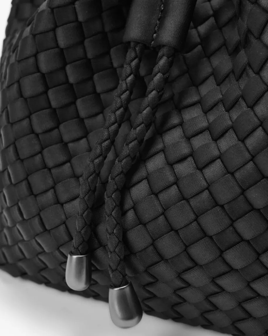 Gramercy Medium Bucket Umhängetasche für Damen von Naghedi in Schwarz. Diesestextile Modell präsentiert sich in dezent changierender Optik und edler Flecht-Aufmachung, während das Bucket-Design mit Kordelzug-Verschluss einen modischenBegleiter kreiert.