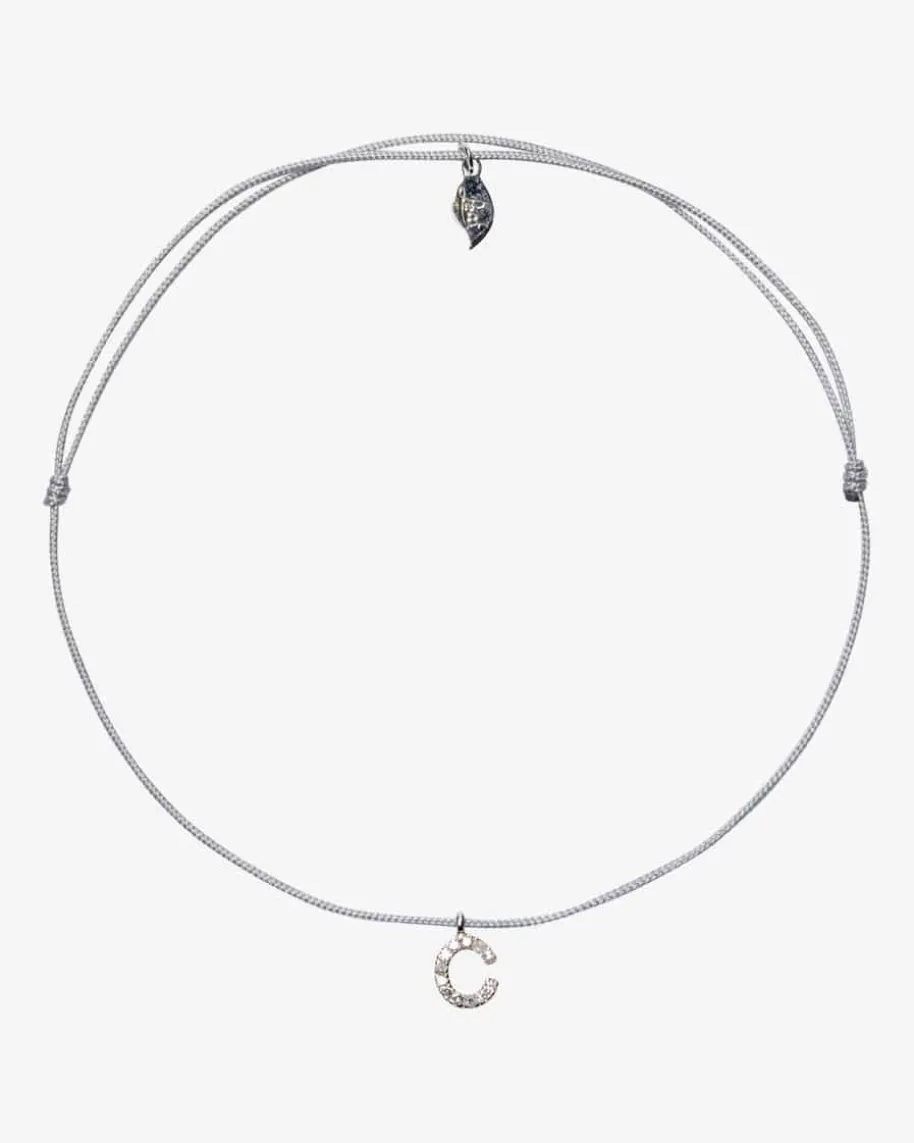 C-Glücksbändchen für Damen von Leaf in Graublau und Silber. Das filigraneSchmuckstückbesticht dank des diamantenbesetzten Anhängers aus Weißgold als besonderesHighlight, das sich perfekt für modische Lagen-Looks eignet.