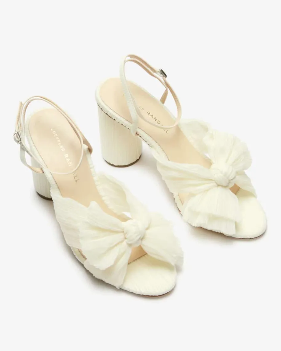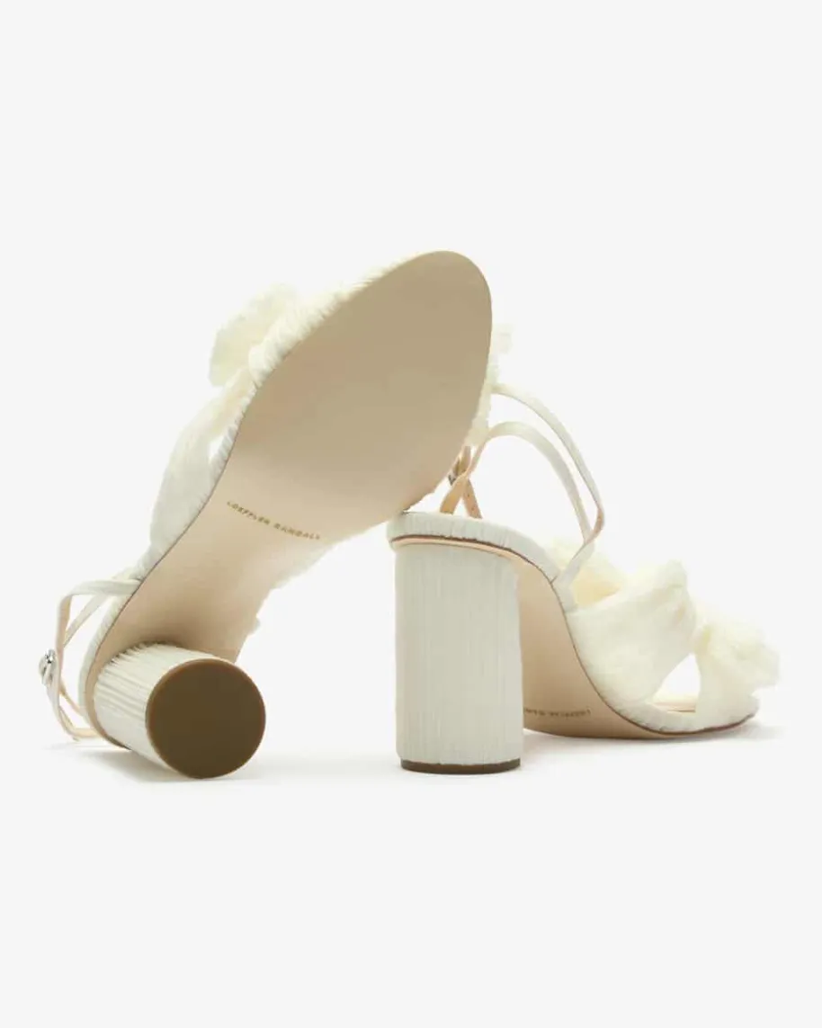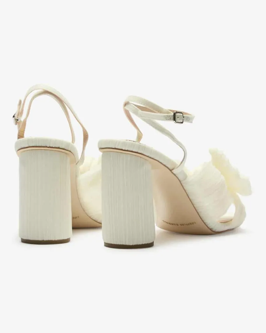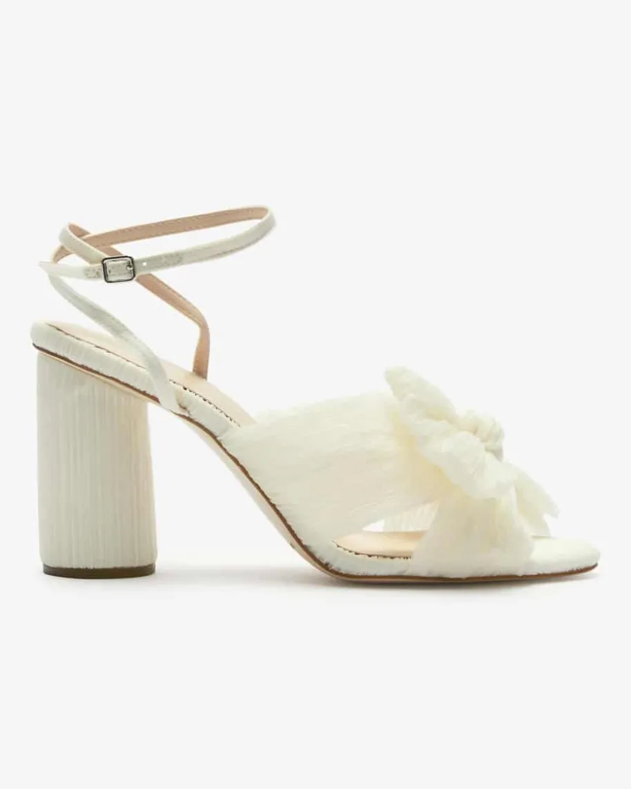 Camellia Sandaletten für Damen von Loeffler Randall in Creme. Das eleganteModell präsentiert sich dank dezent changierender Material-Verarbeitung instilvoller Aufmachung. Zugleich runden das Schleifen-Detail sowie der filigraneRiemen den Look feminin ab – ein perfekter Begleiter für modische Auftritte.