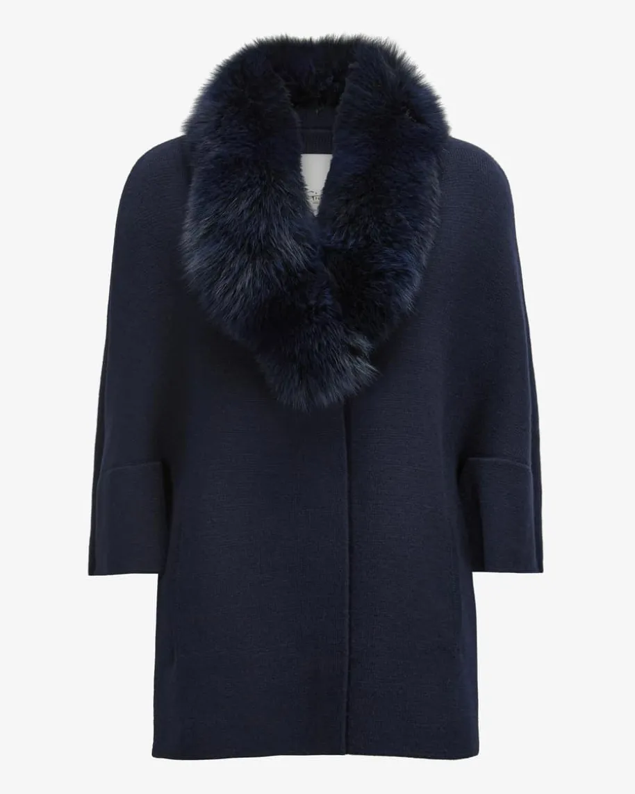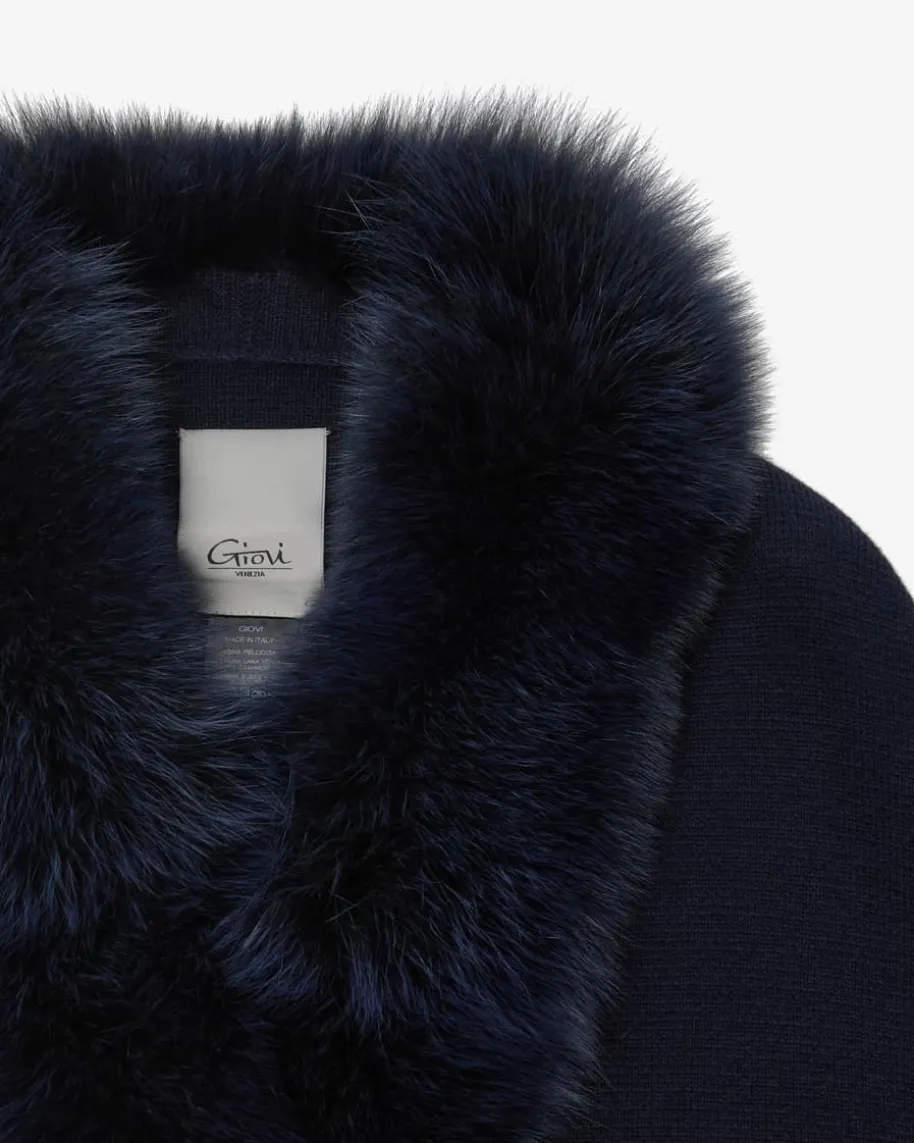 Cape für Damen von Giovi in Marine. Das Modell verspricht dank dem hochwertigenCashmere-Mix angenehme Tragemomente, während der Fuchspelz-Besatz am Kragen demDesign eine elegante Note verleiht.