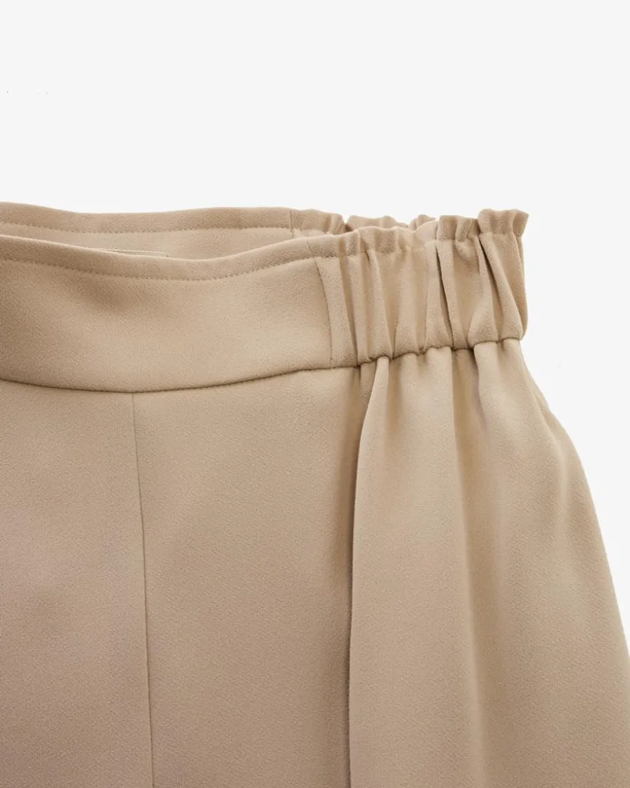 Carla Hose für Damen von Natan in Beige. Dieses elegante Modell präsentiert sichmit fließender Material-Qualität, die für einen femininen Look sorgt, währenddie Bügelfalten zusammen mit den elastischen Einsätzen am Bund das Gesamtbildharmonisch vollenden.