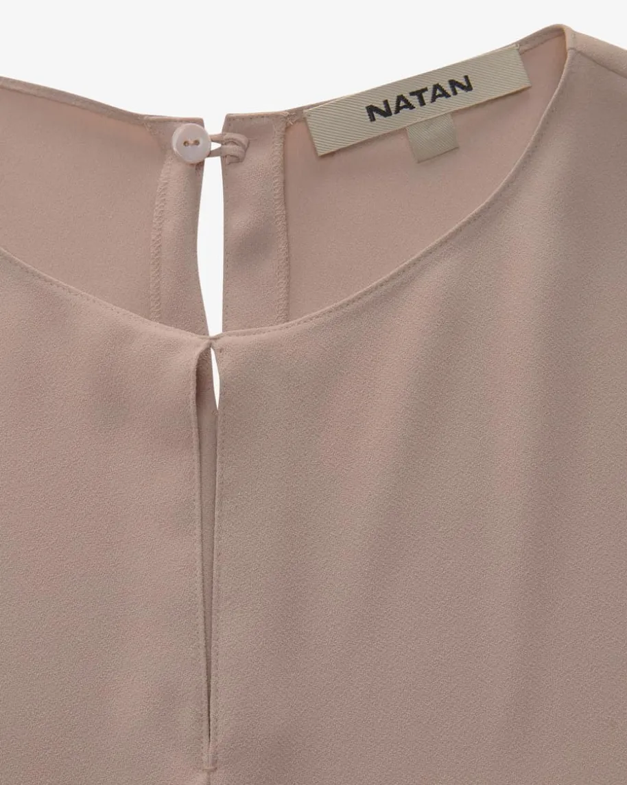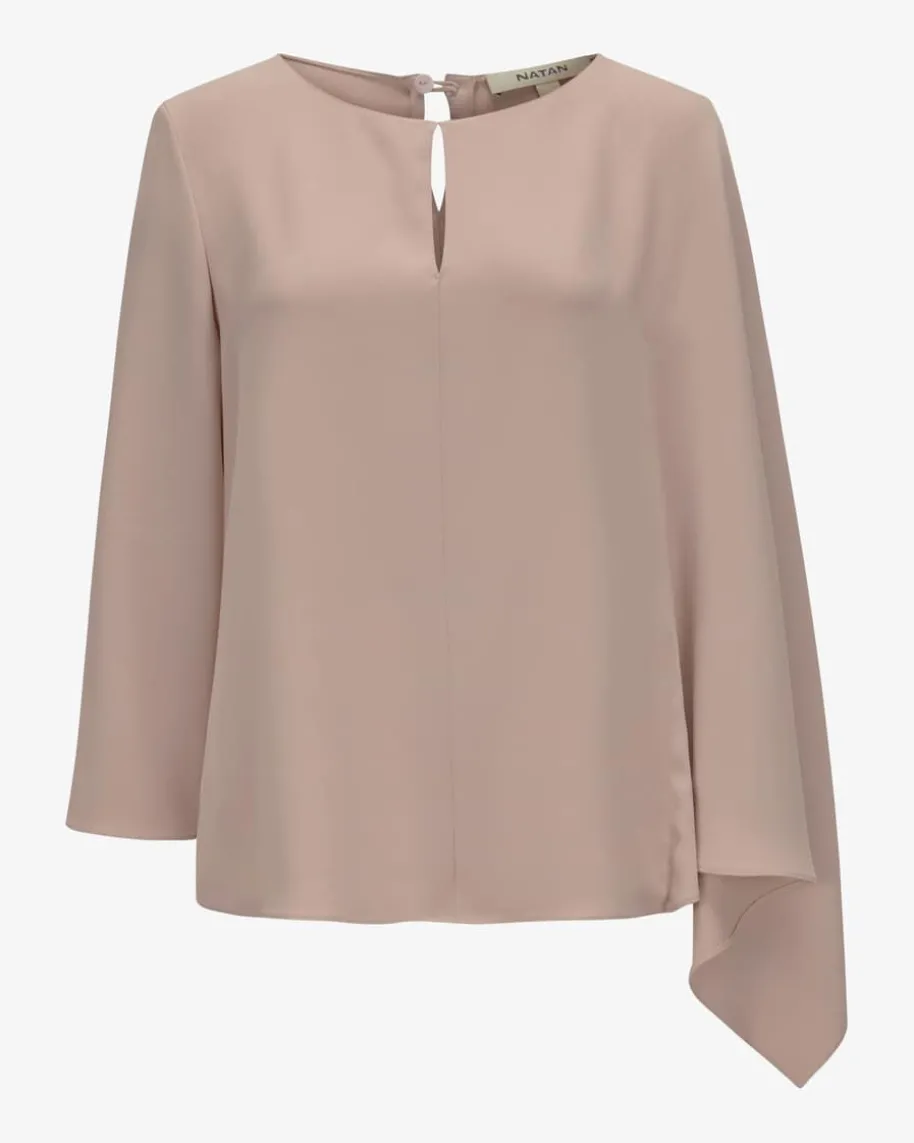 Carlos Bluse für Damen von Natan in Beige. Mit diesem Modell hat das belgischeLabel ein modisches Piece aus fließender Crepe-Qualität geschaffen, das dank derraffinierten Silhouette im Cape-Stil mit asymmetrischen Ärmeln besondereHighlight-Looks garantiert.