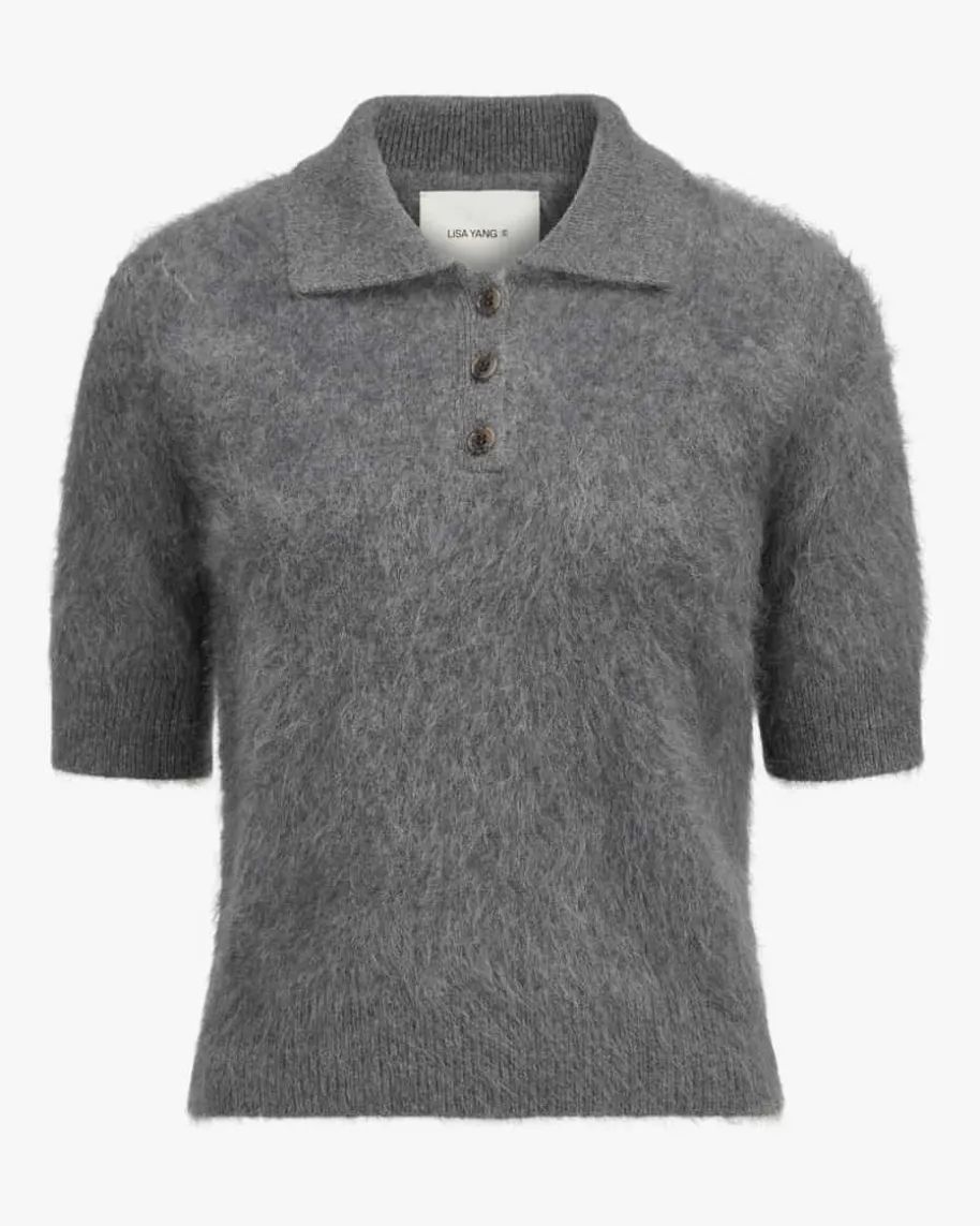 Carolyn Cashmere-Strickshirt für Damen von Lisa Yang in Graphite Brushed. DasModell mitkurzem Ärmel präsentiert sich in weicher Cashmere-Qualität und avanciert dankdeslangem Flor und der klassischen Details zu unserem neuen Strick-Liebling, dersich vielseitig kombinieren lässt.