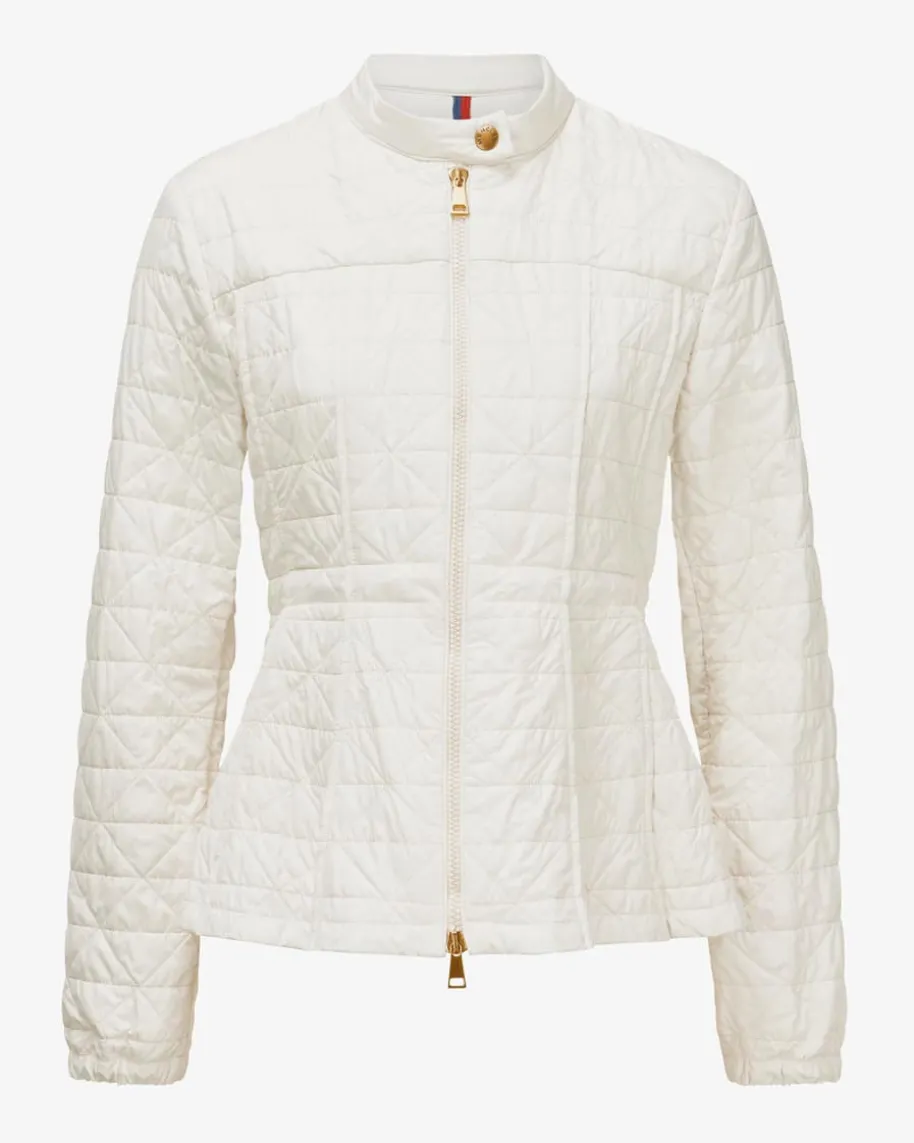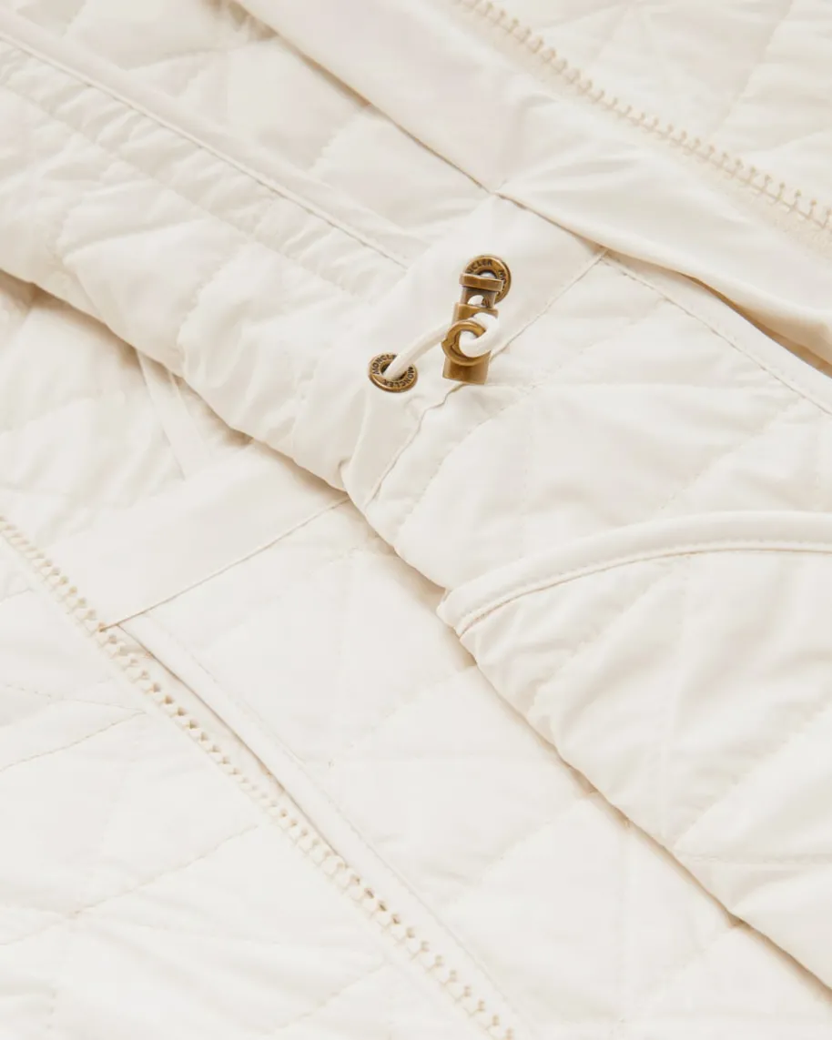 Caron Steppjacke für Damen von Marc Cain in Creme. Das Modell in geometrischemSteppmuster überzeugt mit besonderer femininer Schnittform, während klassischeDetails den Gesamtlook harmonisch abrunden.