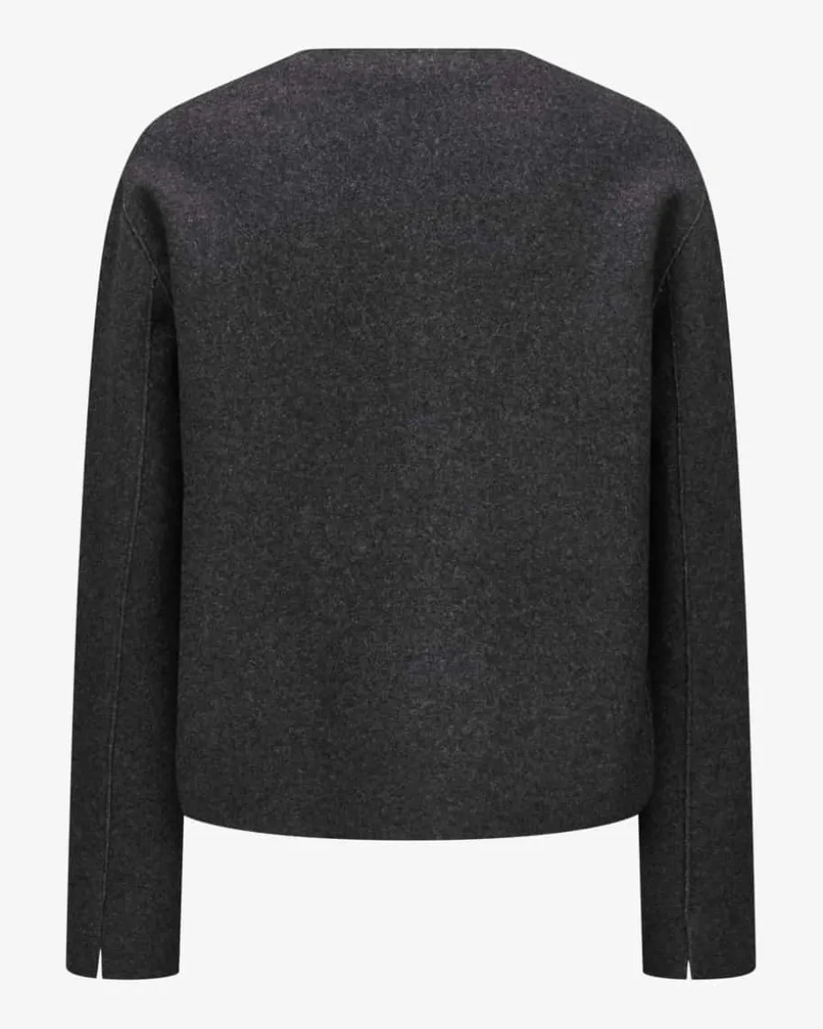 Cashmere-Jacke für Damen von Lunaria in Anthrazit. Pure Exzellenz aus Italien –Diese ungefütterte Blazerjacke aus weicher Cashmere-Qualität begeistert mitlegerer Schnittführung, welche durch die dekorativen Klappentaschen sowie denoffenen Verschluss gekonnt unterstrichen wird und so zum vielseitigen Begleiterfür stilvolle Looks avanciert.