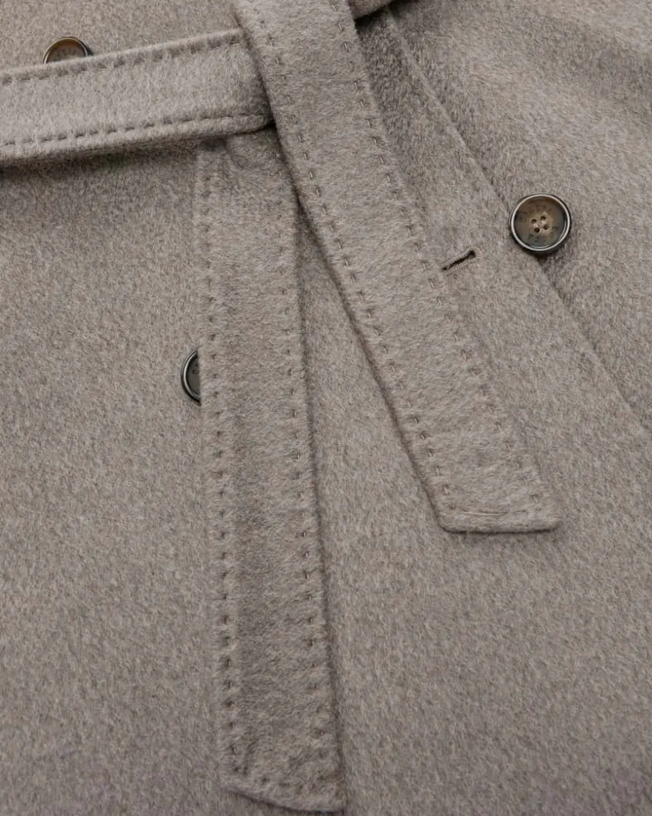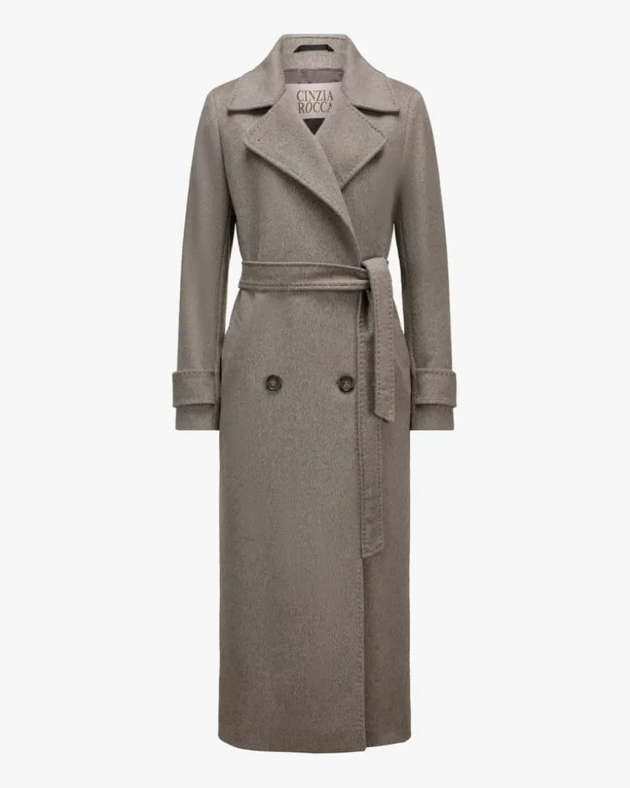 Cashmere-Mantel für Damen von Cinzia Rocca in Stein. Dank der feinen Cashmere-Qualität besticht das Modell mit einem besonders weichen Griff, während dieklassische Trench-Aufmachung einen modernen Begleiter für kalte Tage schafft.