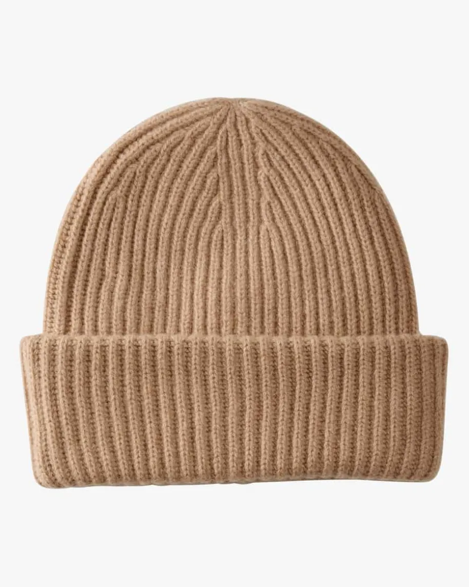 Cashmere-Mütze für Damen von Hemisphere in Camel. Das Modell aus hochwertigerCashmere-Qualität begeistert mit besonders weichem Griff, während das zeitloseRippstrick-Design mit modisch-breitem Umschlag einen beliebten Begleiter fürkalte Tage kreiert.